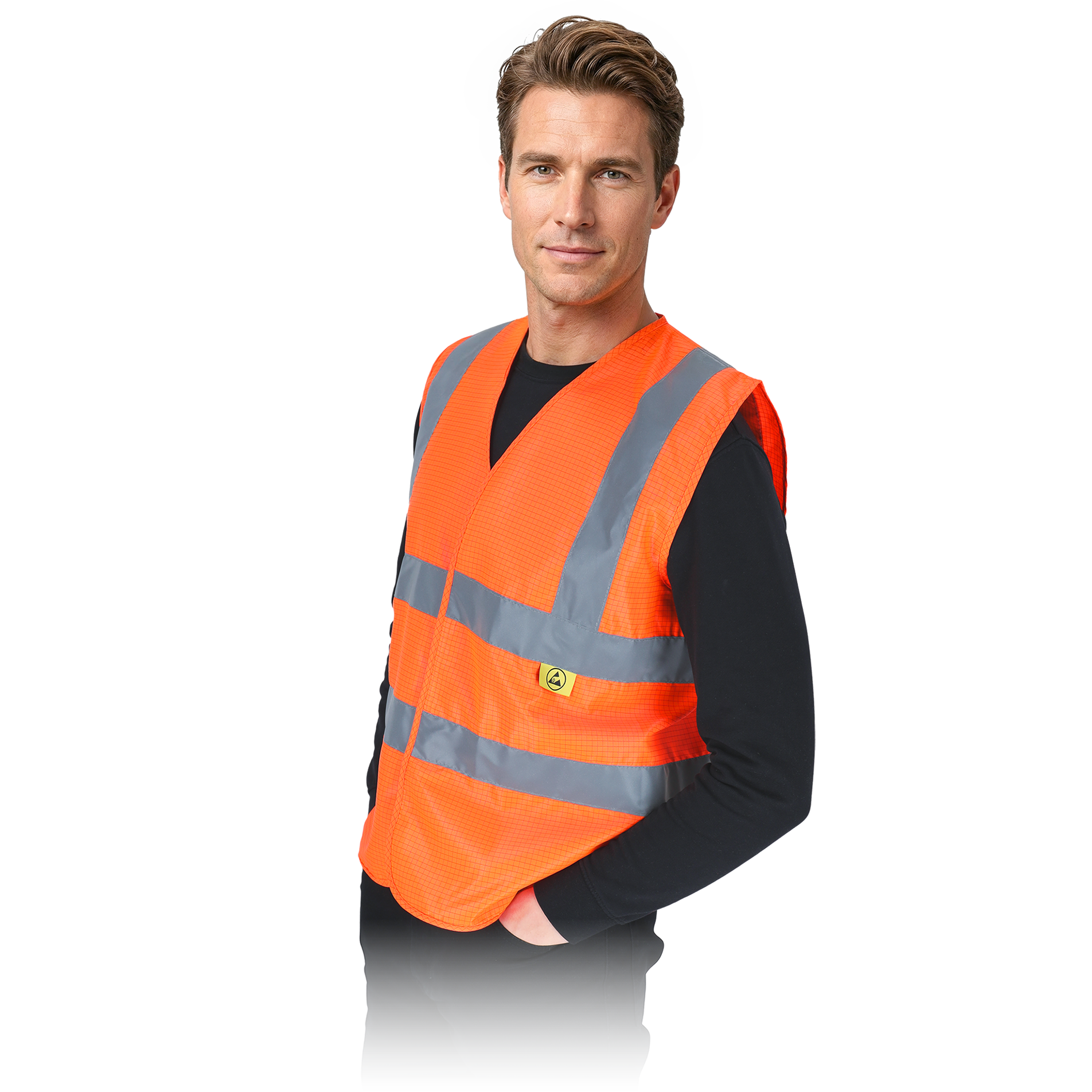 Antistatinė įspėjamoji liemenė su atšvaitais KOS ESD, oranžinės spalvos
