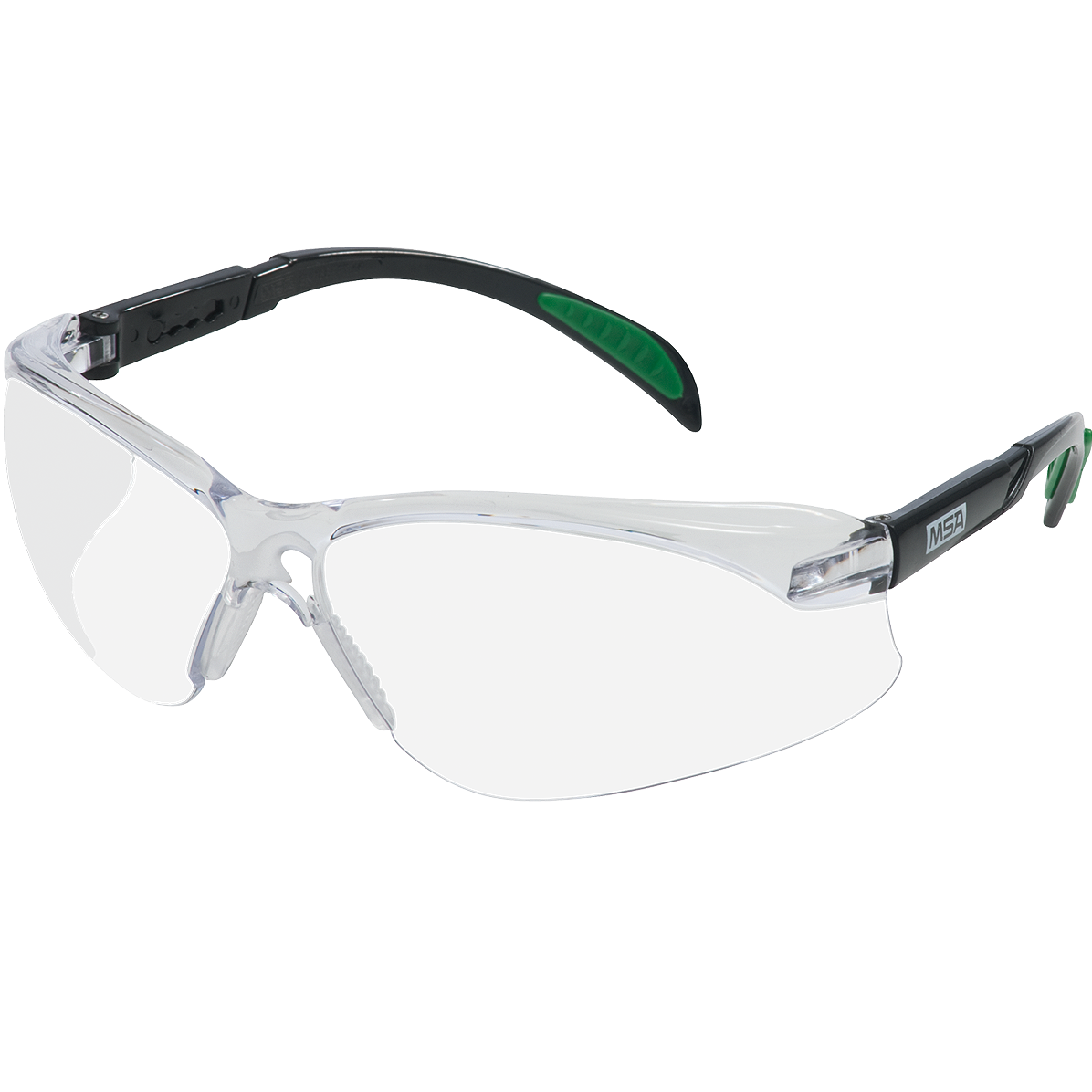 Apsauginiai akiniai su skaidriais lęšiais - ypatingai aukštos kokybės ir labai patogūs dėvėti ne tik dirbant, bet ir laisvalaikiu. Šie akiniai skirti darbui patalpose - užtikrina puikų neiškraipytą panoraminį vaizdą, turi lanksčią silikoninę noselę, kuri lengvai pritaikoma pagal kiekvieno nosies formą. Lęšiai atsparūs įbrėžimams, rasojimui ir smulkioms lekiančioms dalelėms. Akinių kojelės lanksčios, padengtos silikonu, neslystančios, reguliuojamo ilgio. Akiniai atsparūs dideliems temperatūrų pokyčiams, suteikia apsaugą nuo netiesioginių saulės spindulių bei šoninę ir antakių srities apsaugas. Akiniai itin lengvi. 99.9% apsaugo nuo UV spindulių.