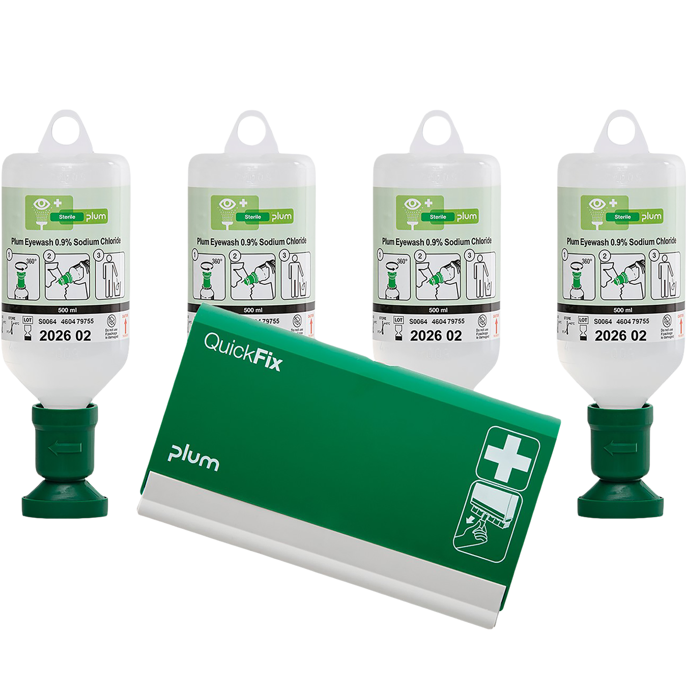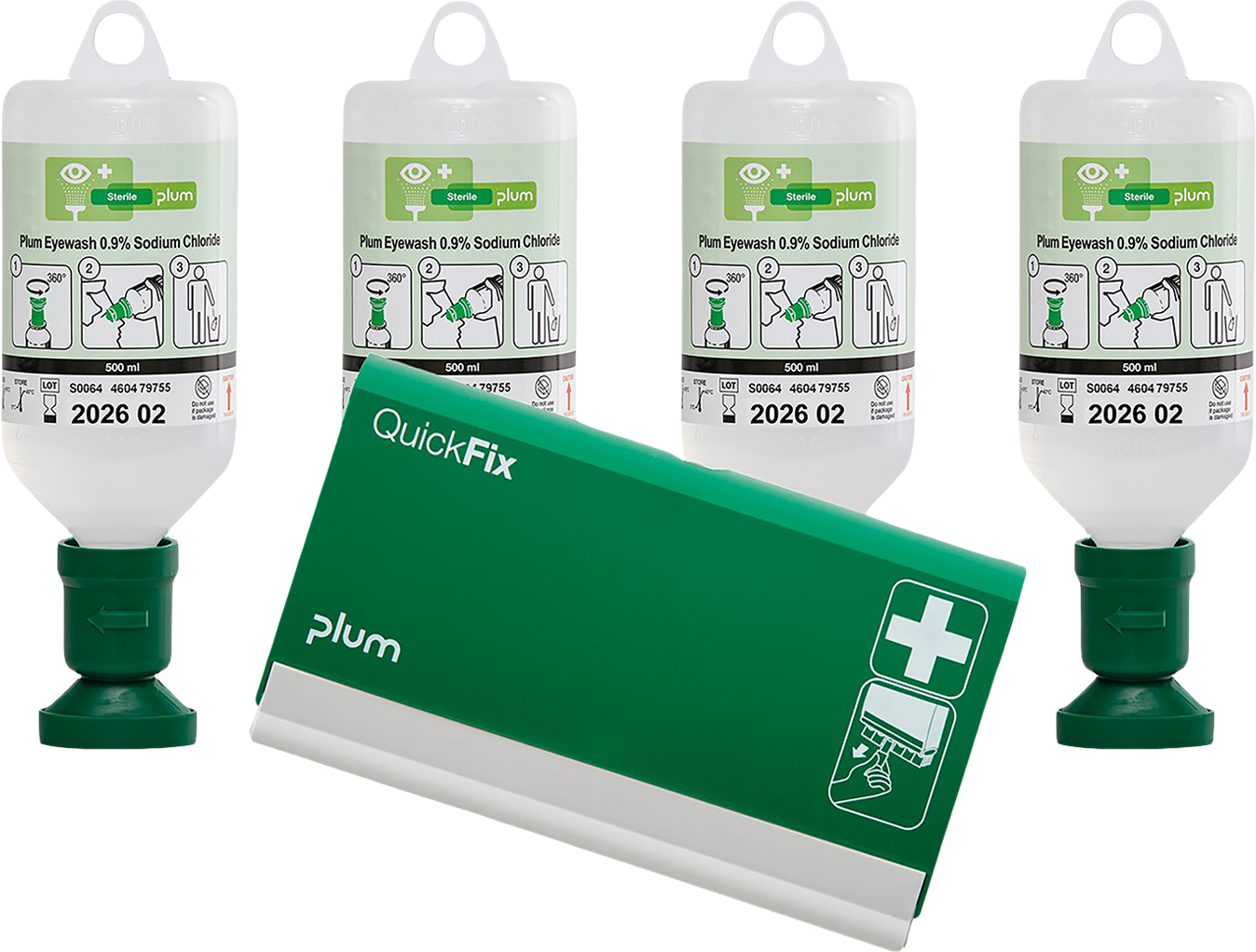 4 vnt. x 500 ml Plum akių plovimo skysčio – 0,9 % natrio chlorido (NaCl) tirpalas, tinkamas svetimkūnių ir dulkių pašalinimui iš akių