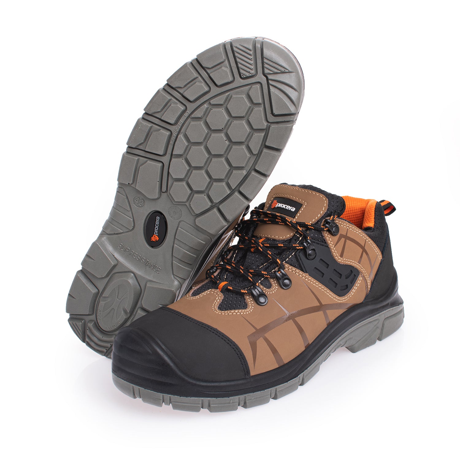 Pristatome mūsų aukščiausios klasės apsauginius batus, kurie yra sukurti ne tik apsaugoti, bet ir suteikti maksimalų komfortą bei išlaikyti modernų dizainą darbo aplinkoje. Šie batai aprūpinti apsauginiu plieniniu pirštų dangteliu, atspariu iki 200 J smūgių energijai ir 15 kN spaudimui, bei plienine plokštele apsaugančia nuo pado pradūrimo, kuri apsaugo koją nuo 1100 N jėgos durimo. Tai užtikrina neprilygstamą apsaugą sunkiausiomis darbo sąlygomis. Batų kaegorija - S3.