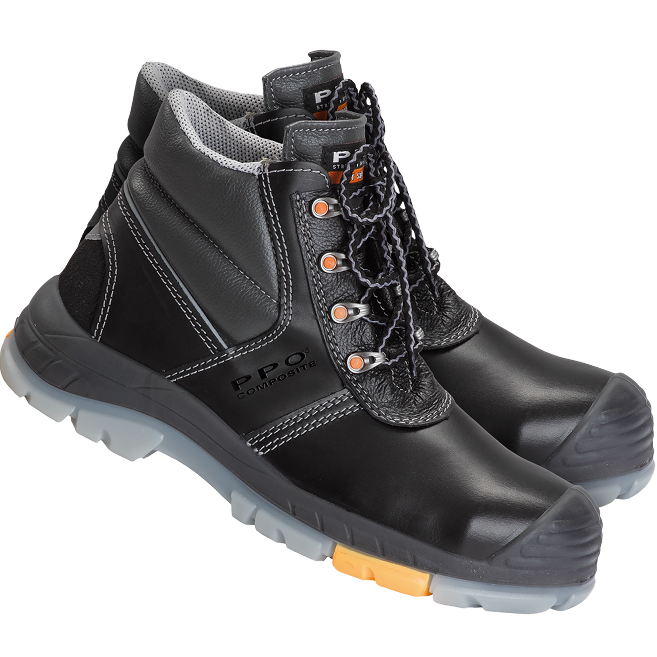 Apsaugos batai su kompozitiniu pirštų apsauginiu ir nemetaline apsauginė įdėkle.