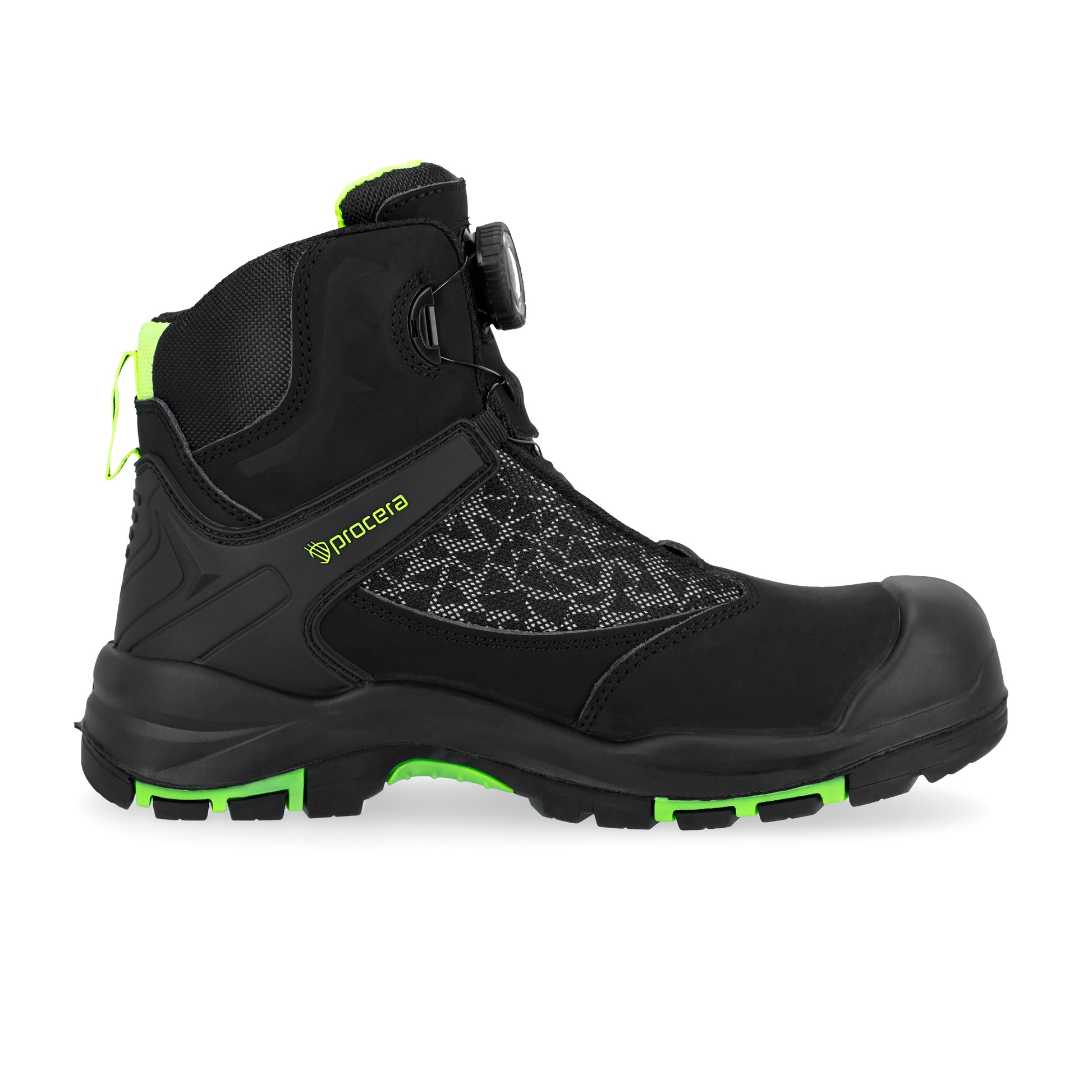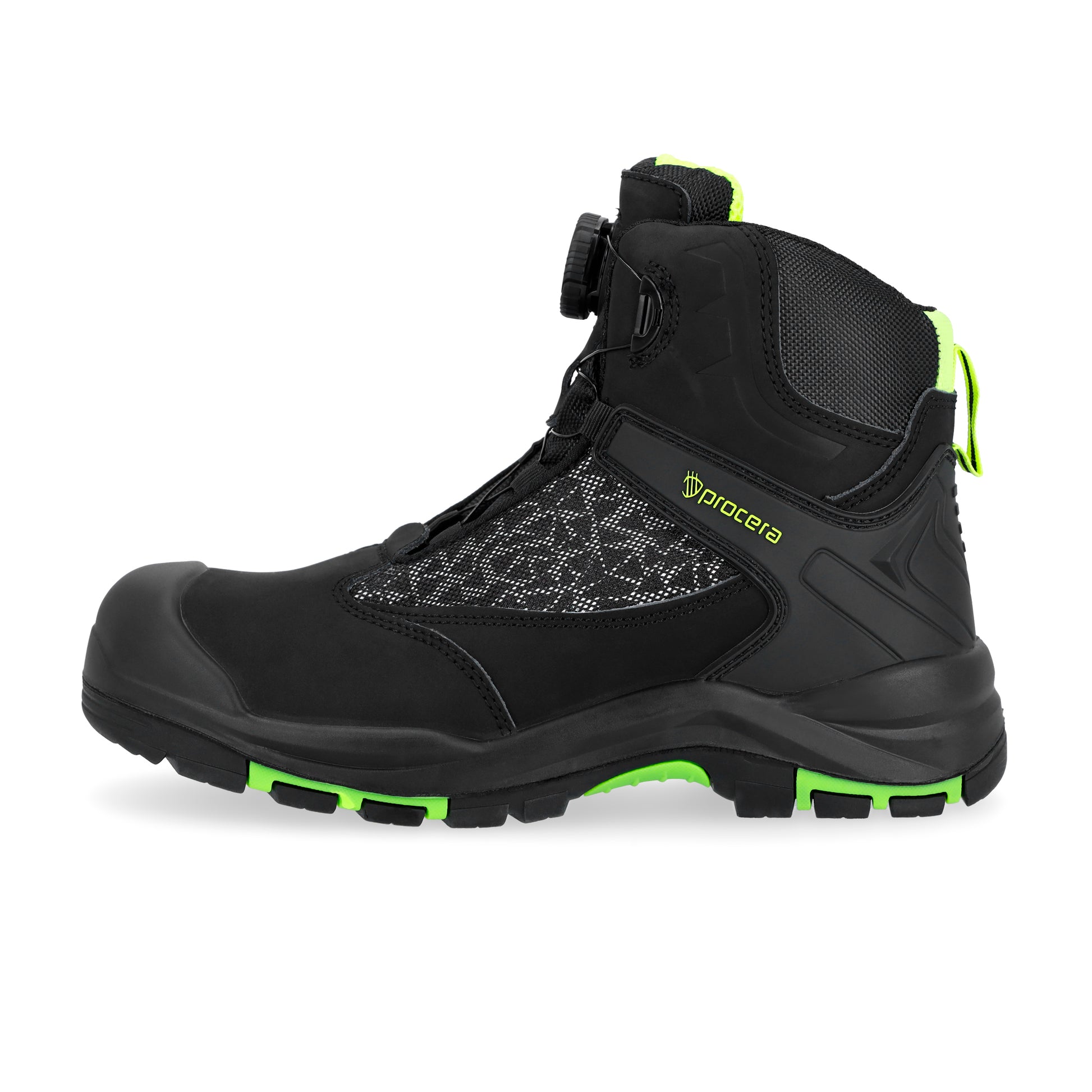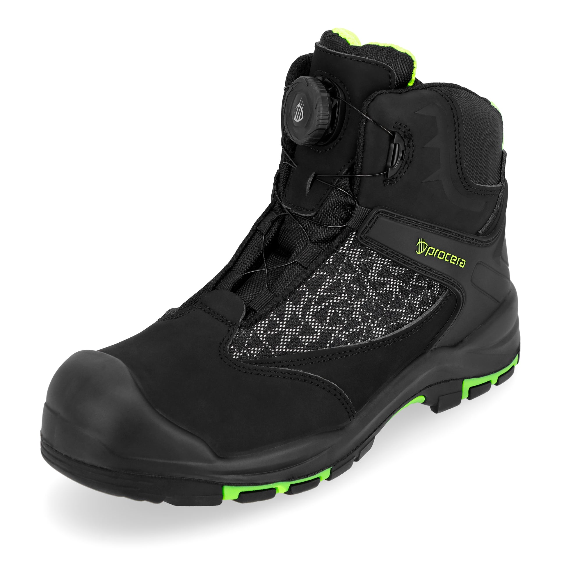 Šiuolaikiški apsauginiai batai, aprūpinti pažangia SPIN ON užsegimo sistema, kuri naudoja plienines gijas ir mechaninį ratuką greitam bei patogiam batų suveržimui ir atlaisvinimui. Šie batai idealiai tinka intensyvioms darbo sąlygoms, ypač dirbant klūpant, dėl specialiai sustiprinto antgalio, kuris apsaugo avalynę nuo nusidėvėjimo ir pažeidimų.