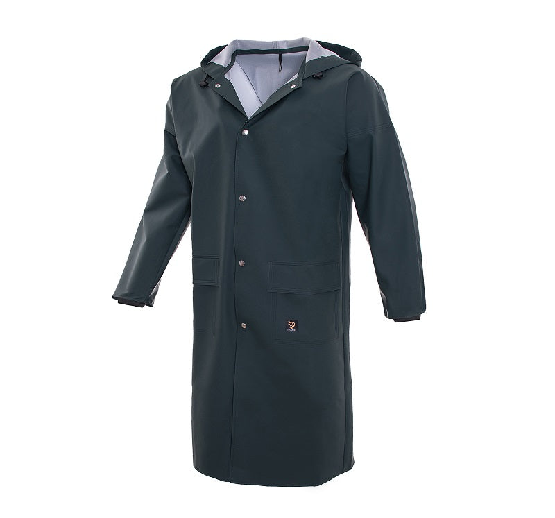Šis aukštos kokybės lietpaltis pagamintas iš Probaltic audinio – poliesterio trikotažo, padengto polivinilchloridu (PVC), kuris užtikrina maksimalų atsparumą vandeniui, vėjui ir mechaniniams pažeidimams. Dėl didelio tankio (350 g/m²) ir specialiai suvirintų siūlių šis modelis idealiai tinka darbui drėgnose ir atšiauriose sąlygose.
