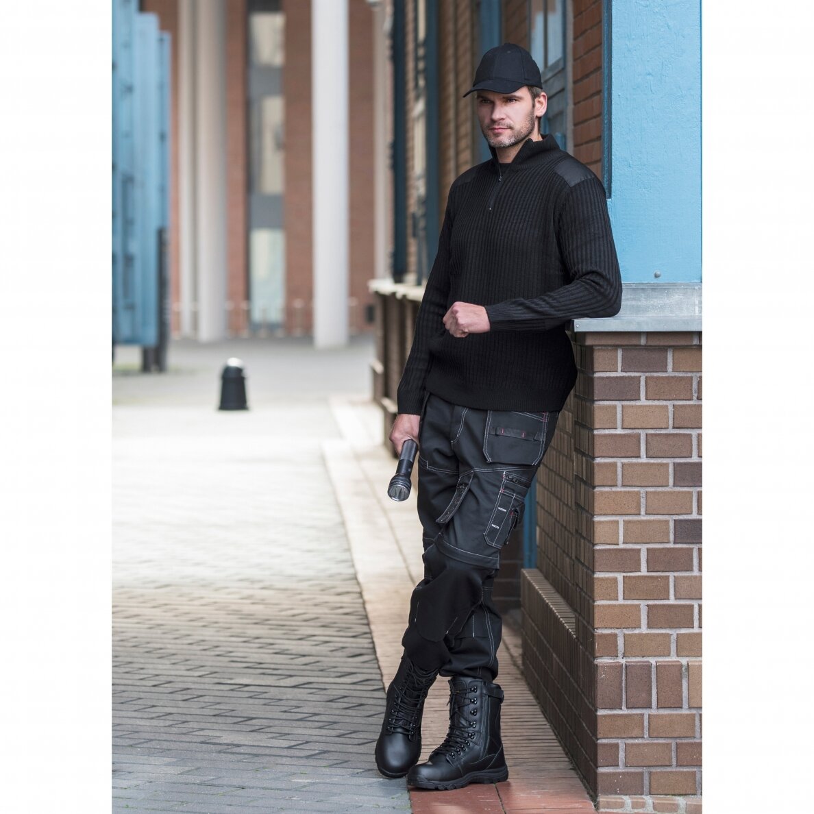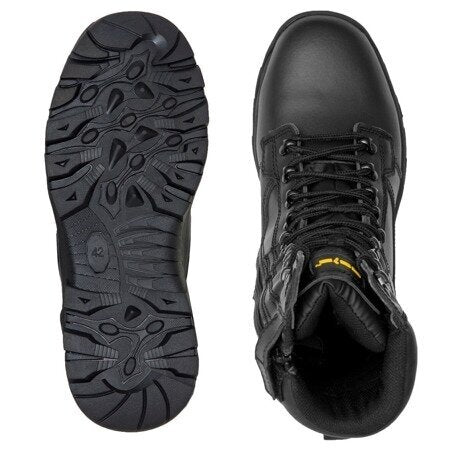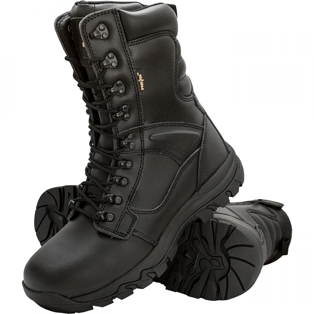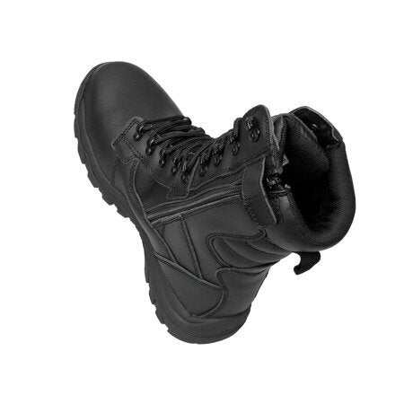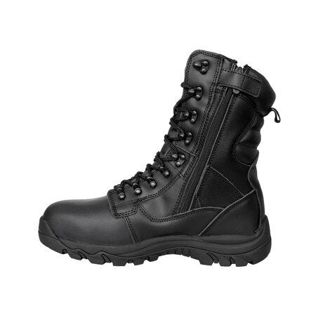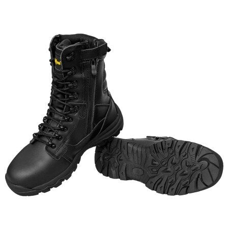 Universalūs odiniai batai, pasiūti iš tvirtos odos. Aukštas aulas, su papildomu užtrauktuku šone, neslidus padas (SB FO SRA kategorija). Įterpta apsauga kojų pirštams.