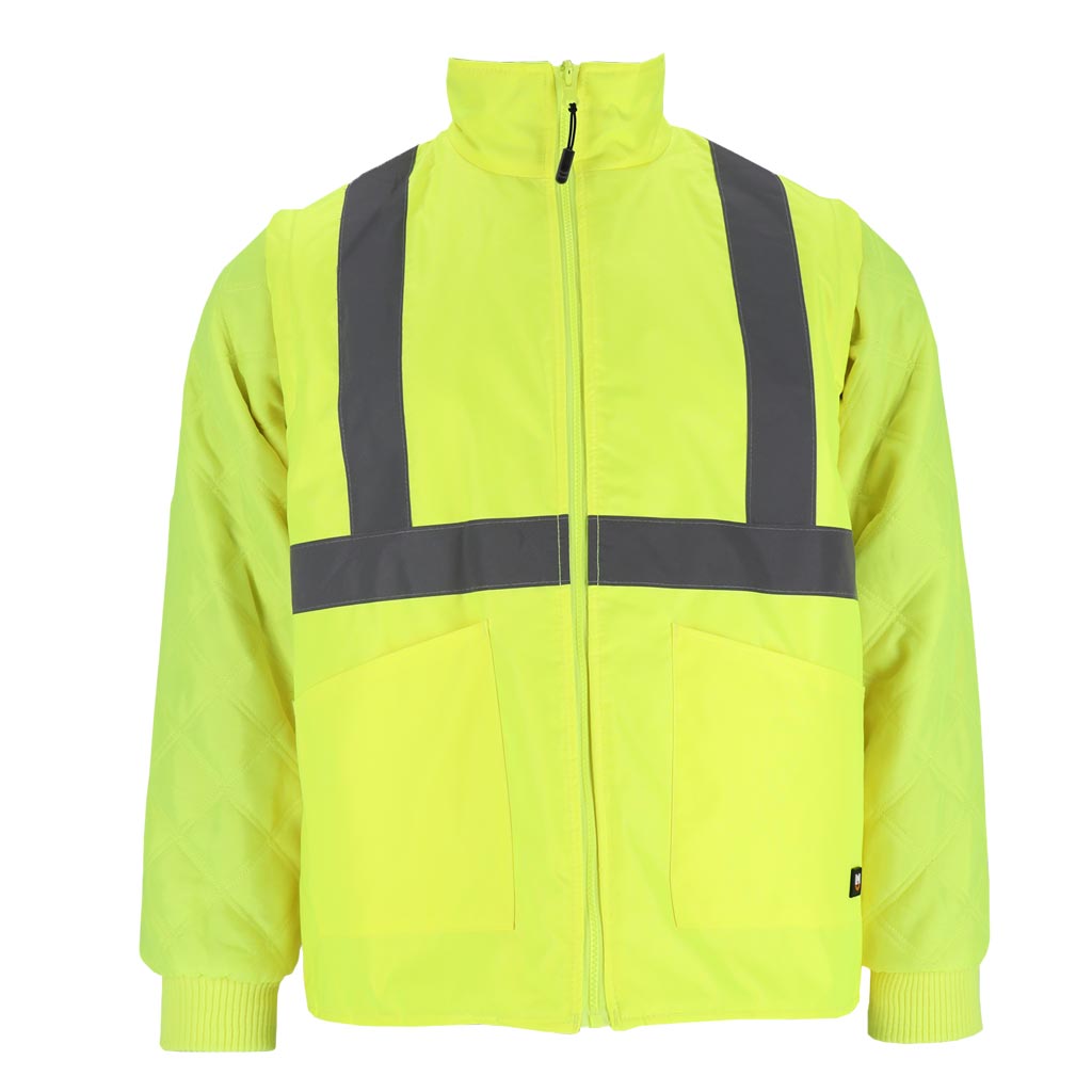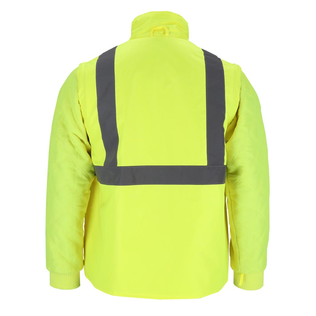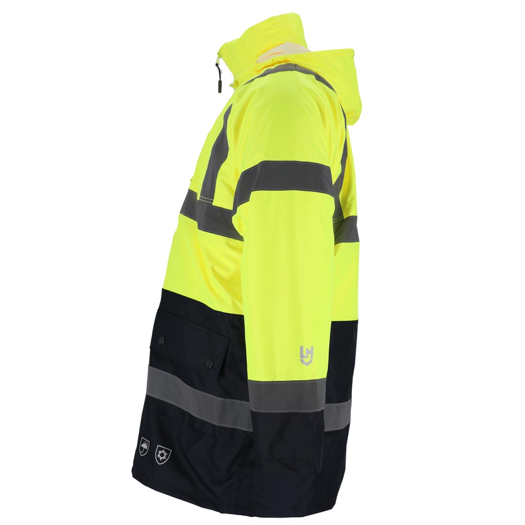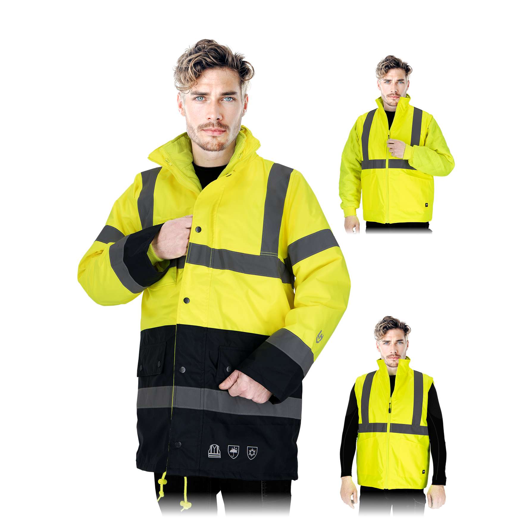 Ši daugiafunkcinė 4-in-1 striukė yra itin patvari ir universali, pritaikyta darbui lauke net ir ekstremaliomis sąlygomis. Ji užtikrina aukštą apsaugos lygį nuo šalčio, drėgmės bei sumažina nelaimingų atsitikimų riziką dėl savo fluorescencinės spalvos ir atšvaitinių juostų.