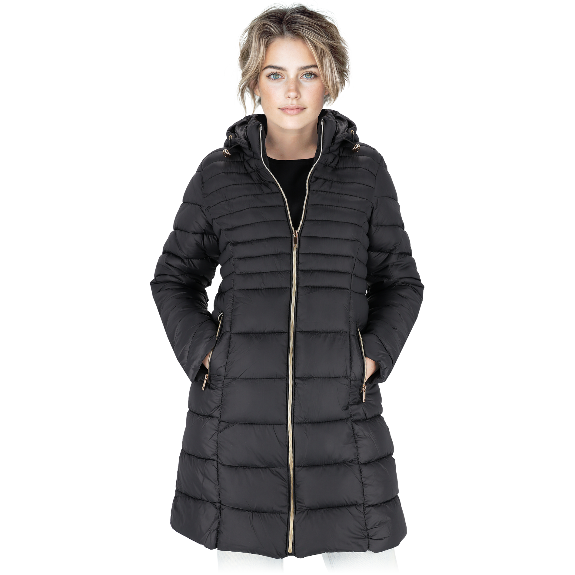 Demisezoninė universali ilga moteriška striukė GRITA, juodos spalvos