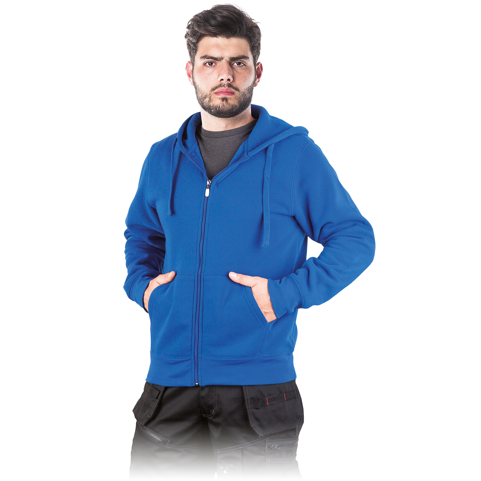 Šiltas vyriškas džemperis, puikiai tinkantis tiek darbui vėsesniu oru, tiek leidžiant laisvalaikį gamtoje. Užsegamas užtrauktuku, turi patogias kišenes šonuose. Yra kapišonas.