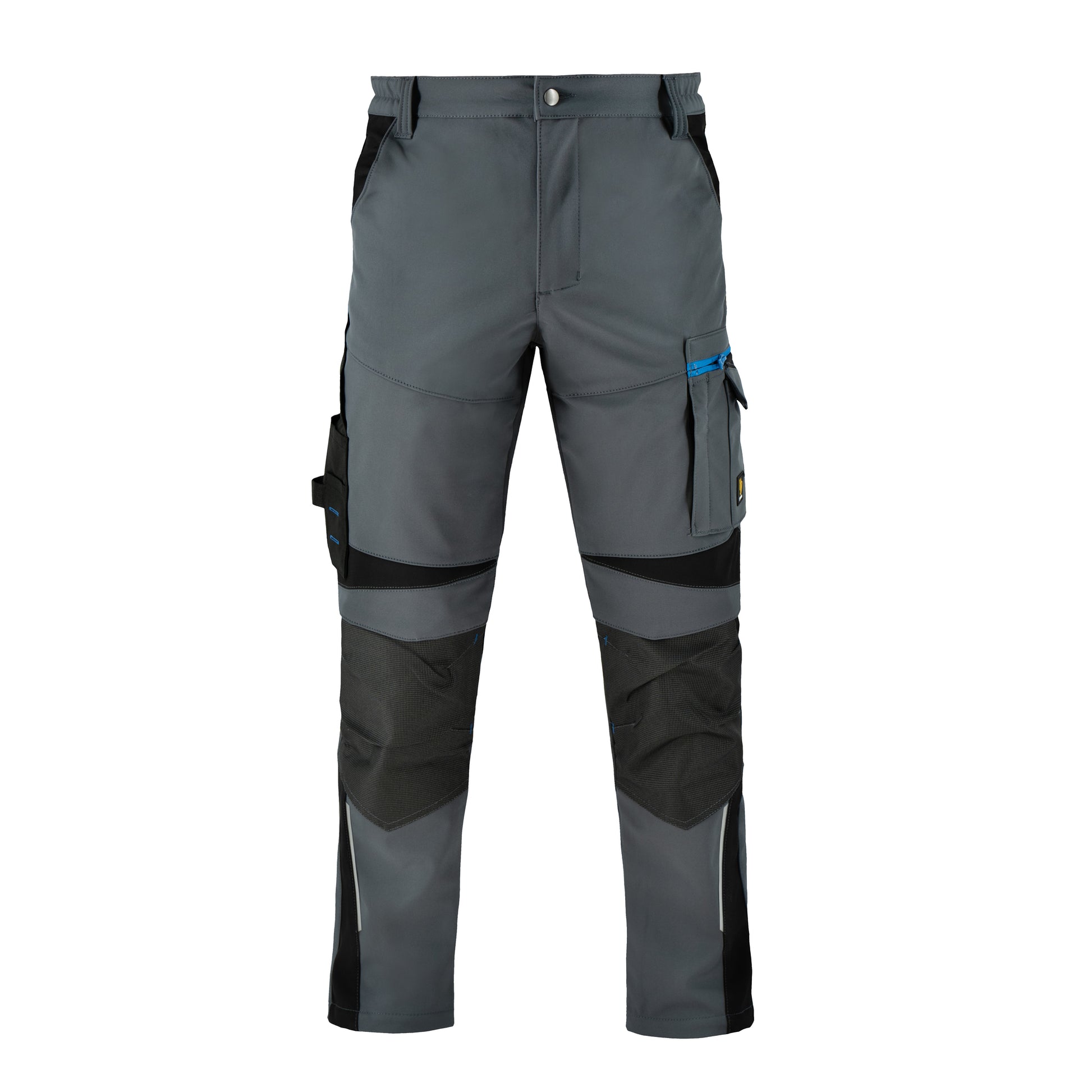 Elastingos softshell kelnės POWER FLEX, skirtos darbui vėsesniu oru, pilkos spalvos