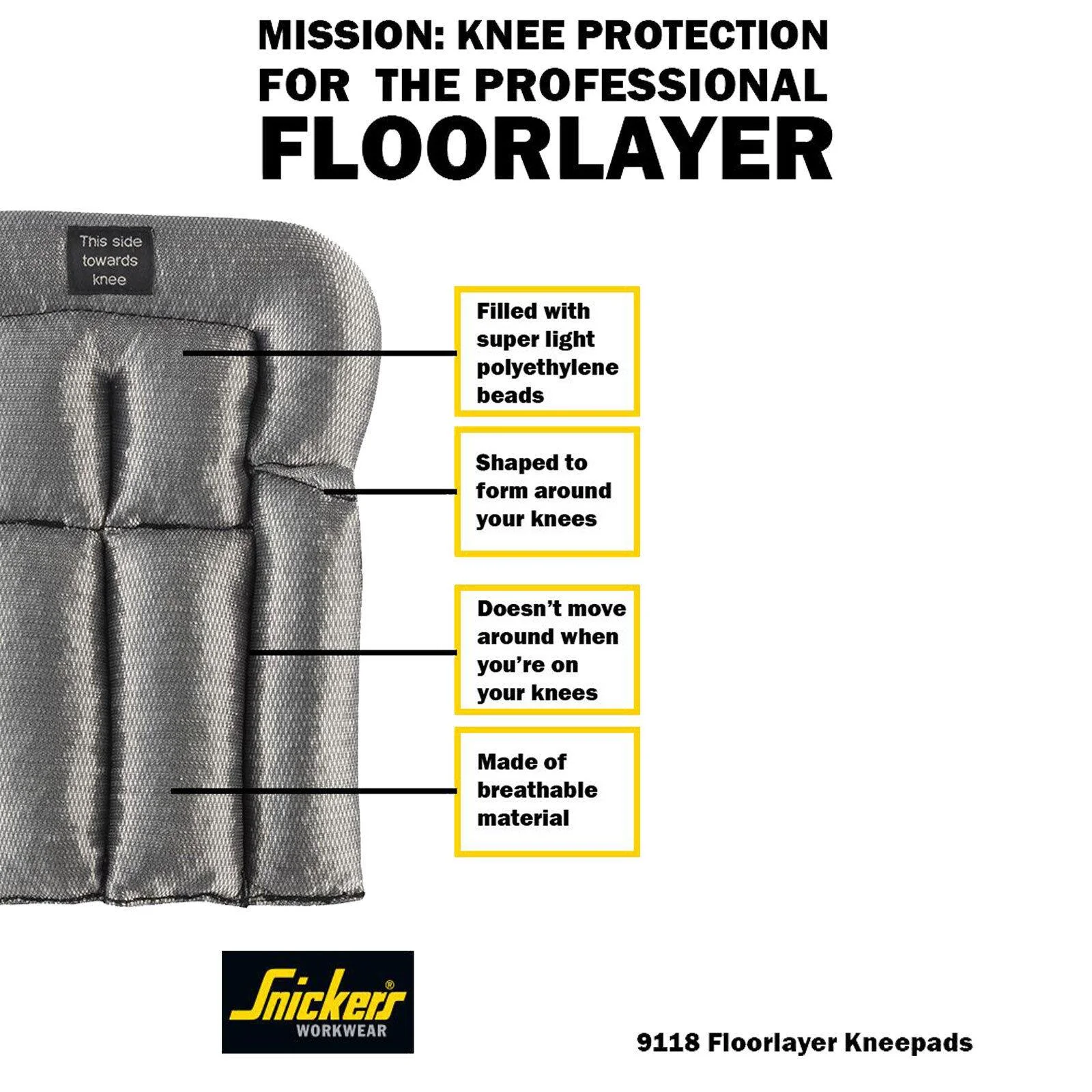 Sertifikuoti, ypatingų savybių, žymaus prekinio ženklo Snickers antkeliai suteikia maksimalią apsaugą bei komfortą. Antkelių viršutinė medžiaga – 85% poliamido, 15% poliesterio -, kurios dėka antkeliai tvirtai įsitvirtina kelnių kišenėje, neišslysta ir nejuda.