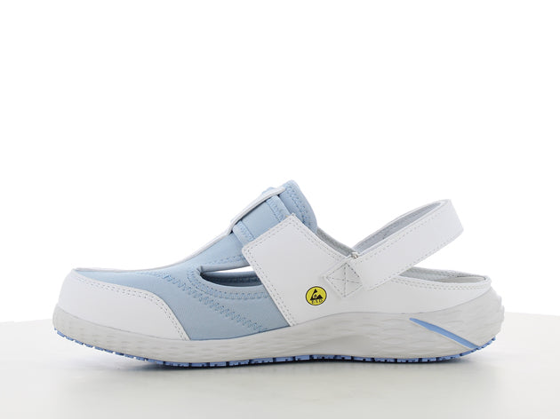 Itin patogios moteriškos darbinės klumpės ALIZA OB ESD A SRC E, baltos su mėlyna spalva
