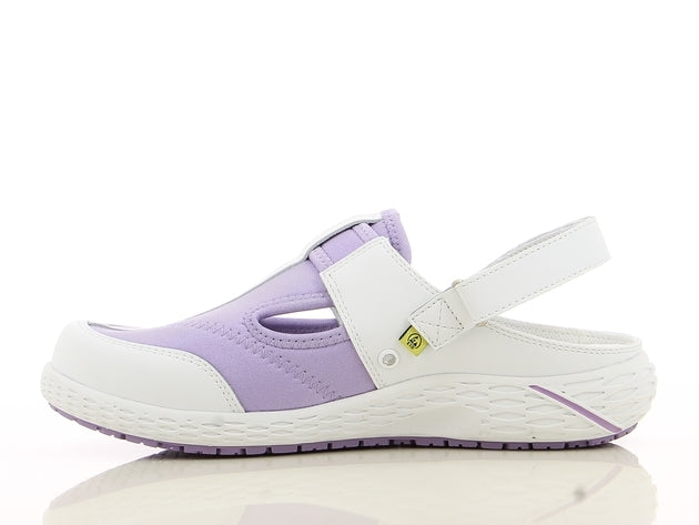 Itin patogios moteriškos darbinės klumpės ALIZA OB ESD A SRC E, baltos su violetine spalva