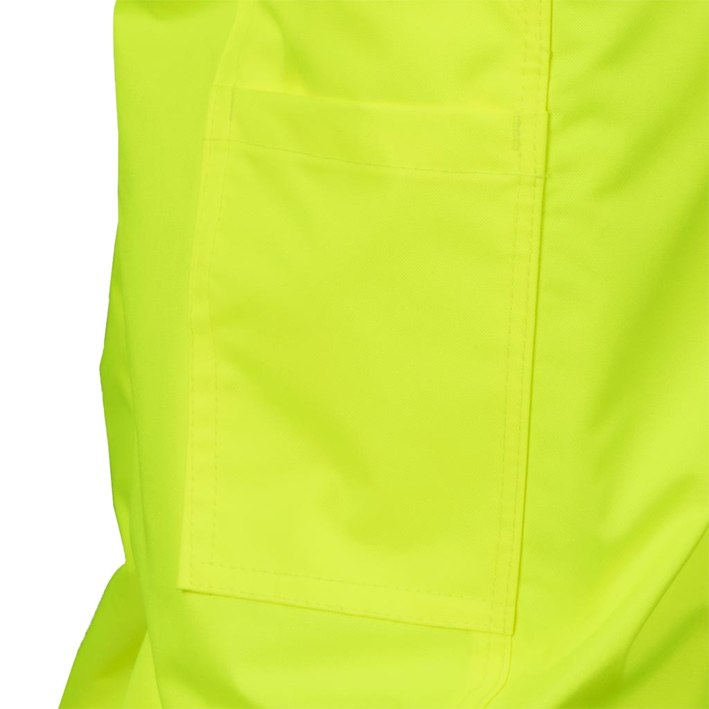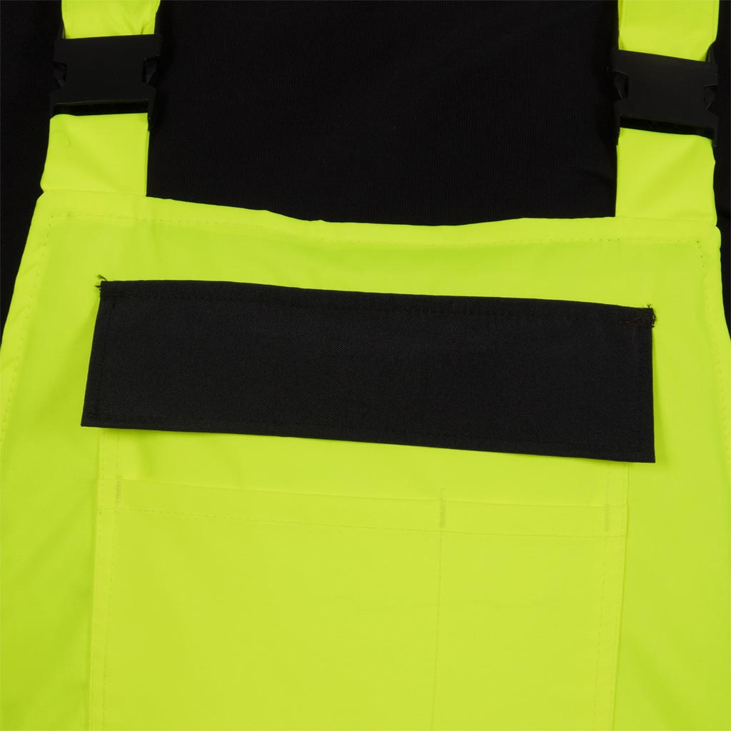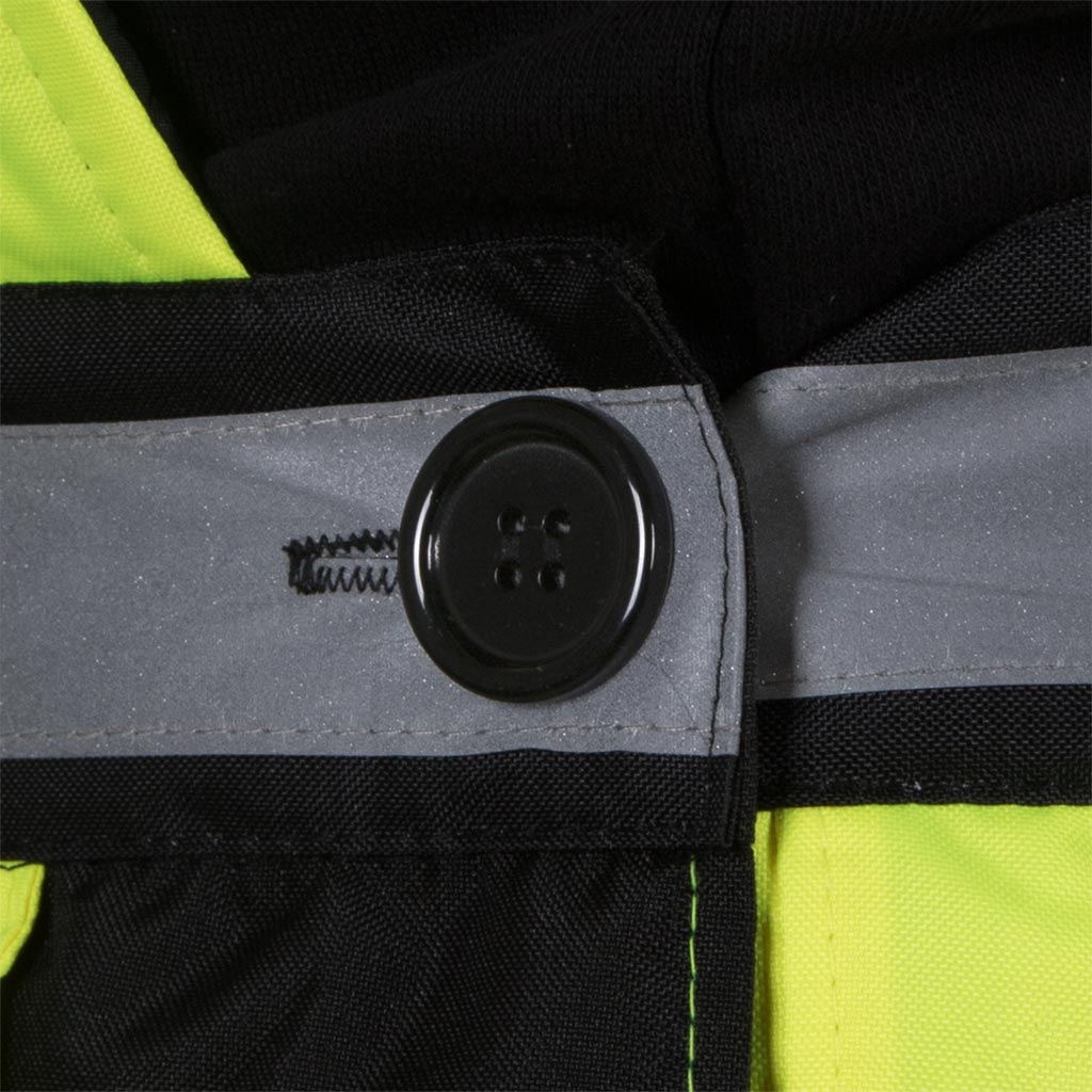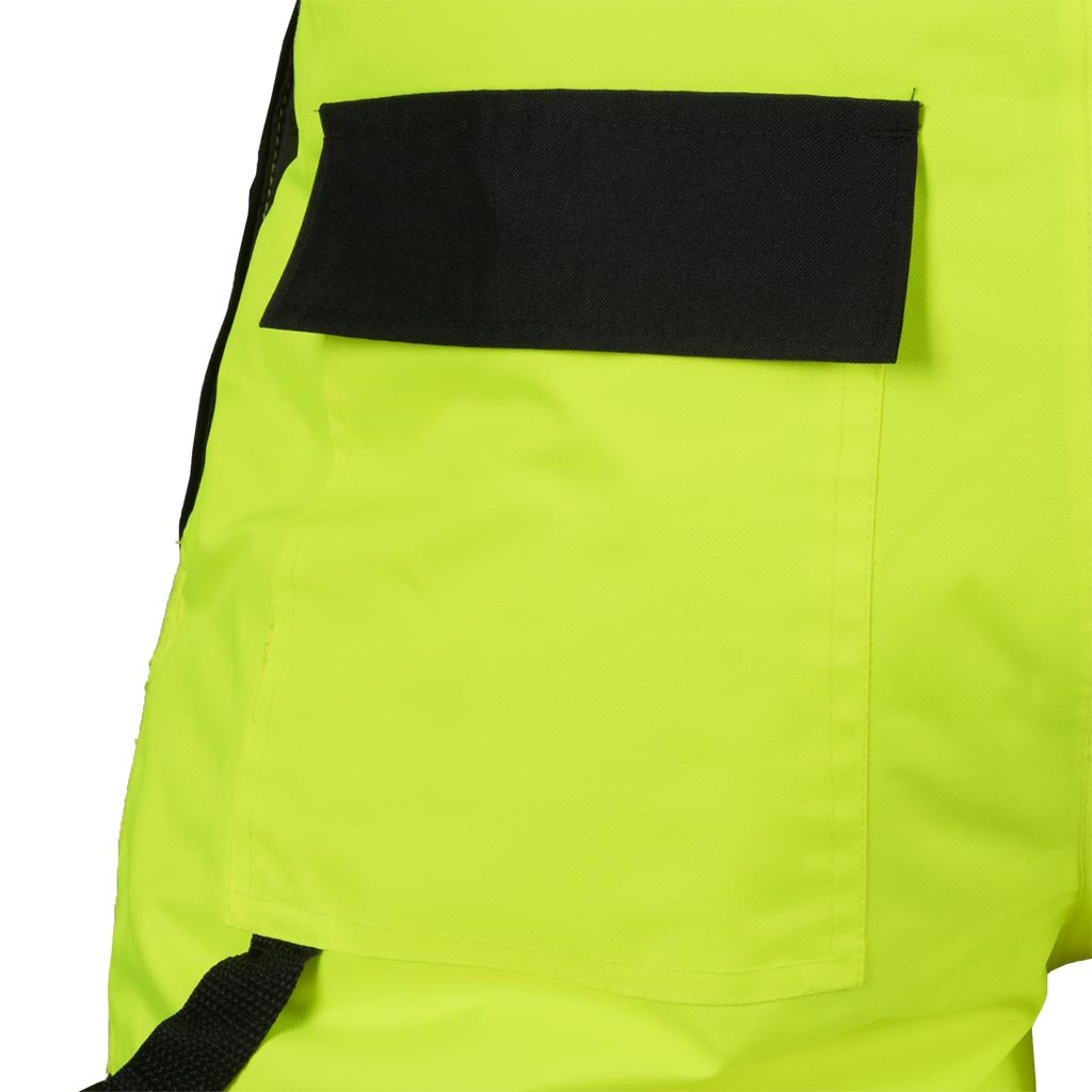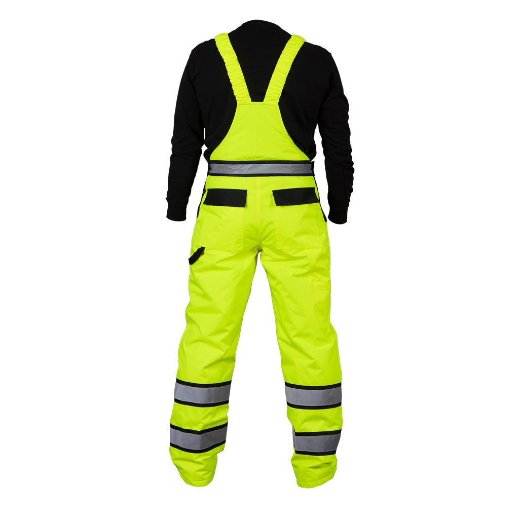 Vyriškas pašiltintas puskombinezonis darbui, su šviesą atspindinčiomis juostomis. Panaudotas fluorescencinis audinys.