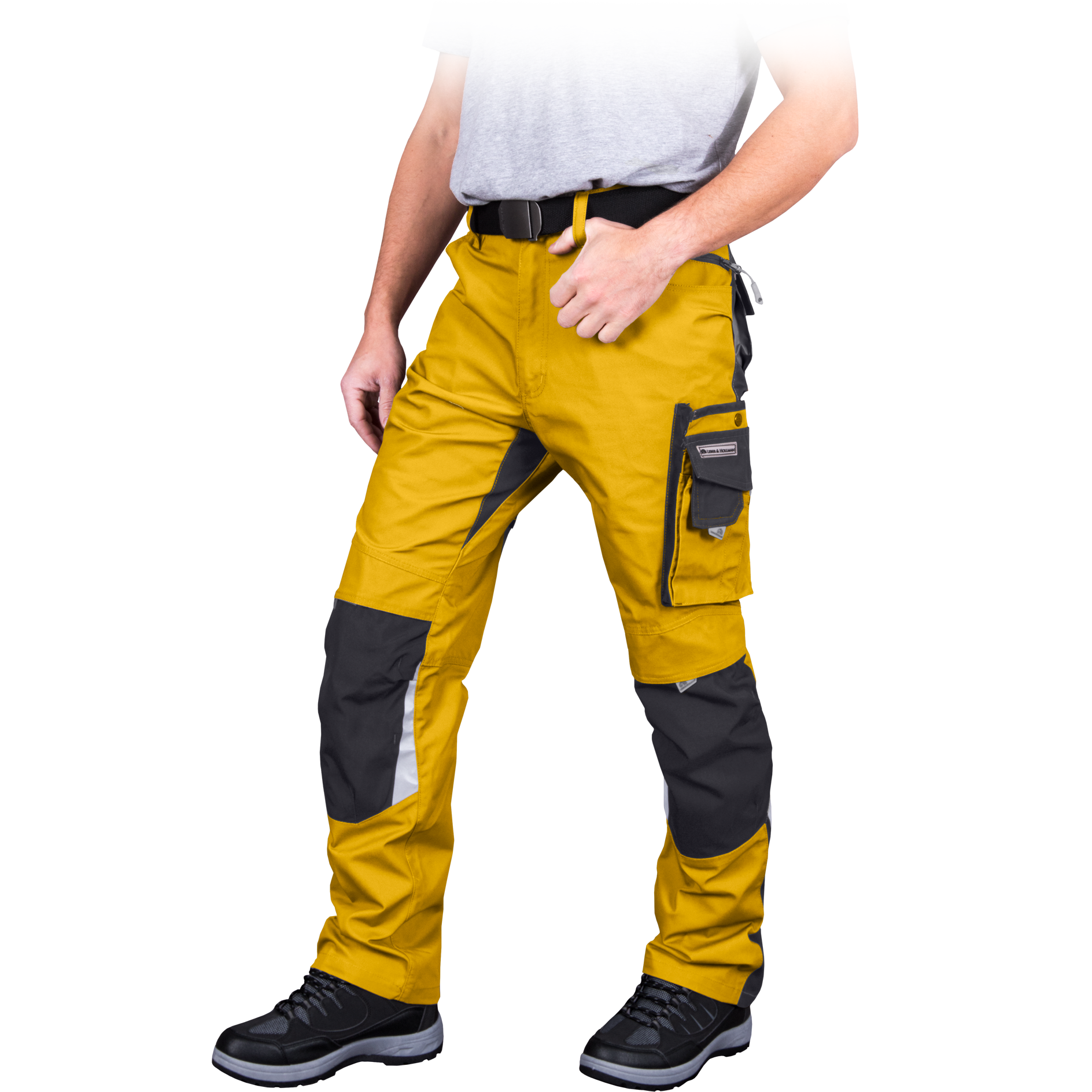 Tvirtos bei patogios vyriškos darbo kelnės, pagamintos iš tvirto bei atsparaus audinio. Patogiai išdėstytos kišenės, numatytos vietos papildomoms kelių apsaugoms, papildomai sustiprintos vietos ties kišenėmis, keliais bei kelnių apačia. Panaudoti šviesą atspindintys elementai.
