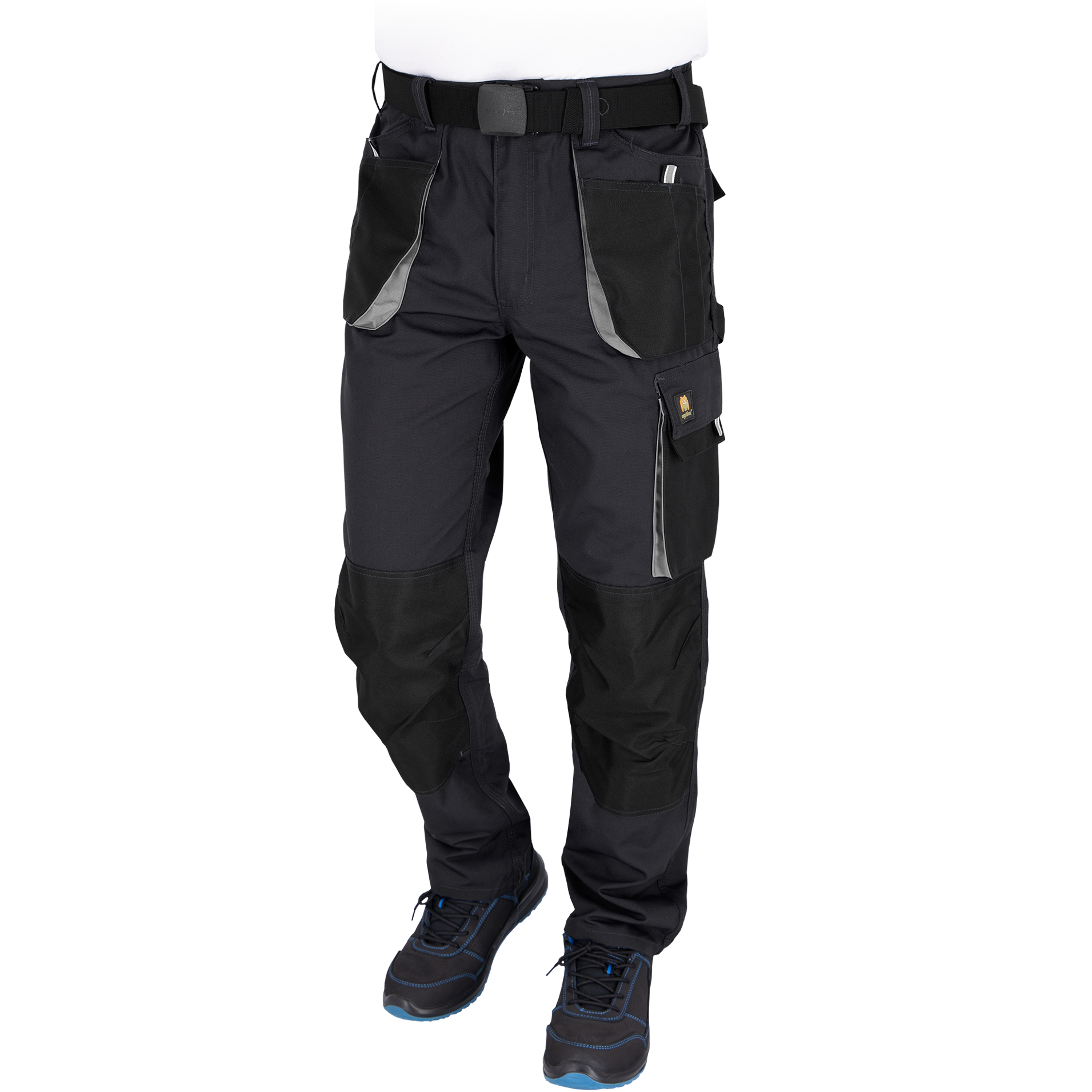 Klasikinės iki juosmens kelnės su moderniais funkcionalumo elementais, atitinkančiais šiuolaikinių profesijų reikalavimus. Geltonos spalvos detalės ir atšvaitai gali būti pridėti prie dizaino, kad užtikrintų didesnį matomumą ir saugumą.