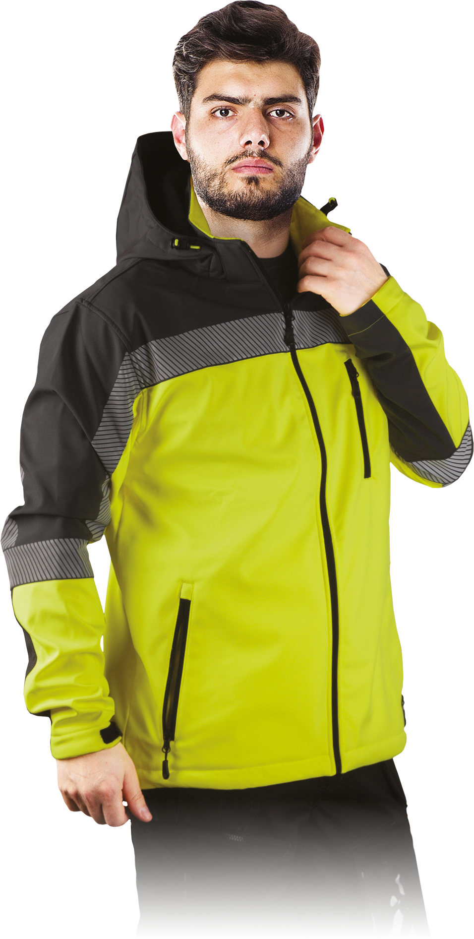 Ši patvari ir funkcionali apsauginė striukė yra pagaminta iš trijų sluoksnių softshell audinio, užtikrinančio aukščiausią komfortą ir apsaugą ne tik nuo lietaus ir vėjo, bet ir suteikiančio odai kvėpuoti. Striukės sudėtis – 96% poliesteris, 4% elastanas su TPU membrana ir 100% poliesterio fliso pamušalu, kuris garantuoja šilumą ir minkštumą nešiojant. 280 g/m² - optimalus audinio tankis, leidžiaišlaikyti šilumą, neprarandant lankstumo ir patogumo.