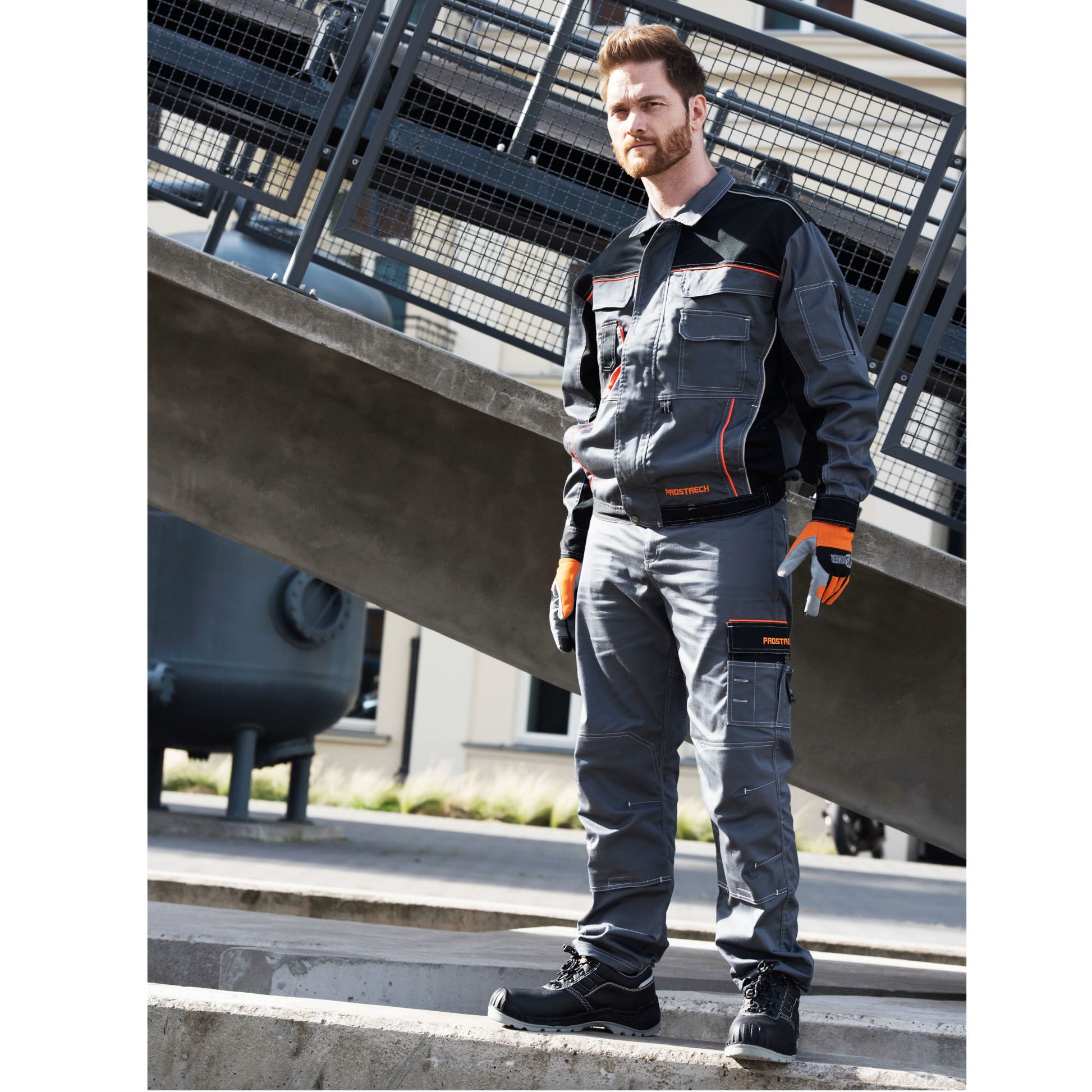 Elastingos ir atsparios vyriškos darbo kelnės. Pasiūtos iš itin atsparaus audinio, todėl patogu dirbti sudėtingus darbus įvairiose pozicijose. Papildomai suplanuotos patogios šoninės kišenės, sutiprintos svarbiausios vietos, pridėtos specialios kilpos raktams bei darbo įrankiams, yra kišenėlė laikyti mobilų telefoną bei įstatyti kelių apsaugas. Audinys neblunka intensyviai naudojant ir skalbiant, todėl užtikrina komfortą ir saugų darbą įvairiomis sąlygomis. Sustiprintos siūlės užtikrina ilgesnį kelnių tarnavimo laiką.