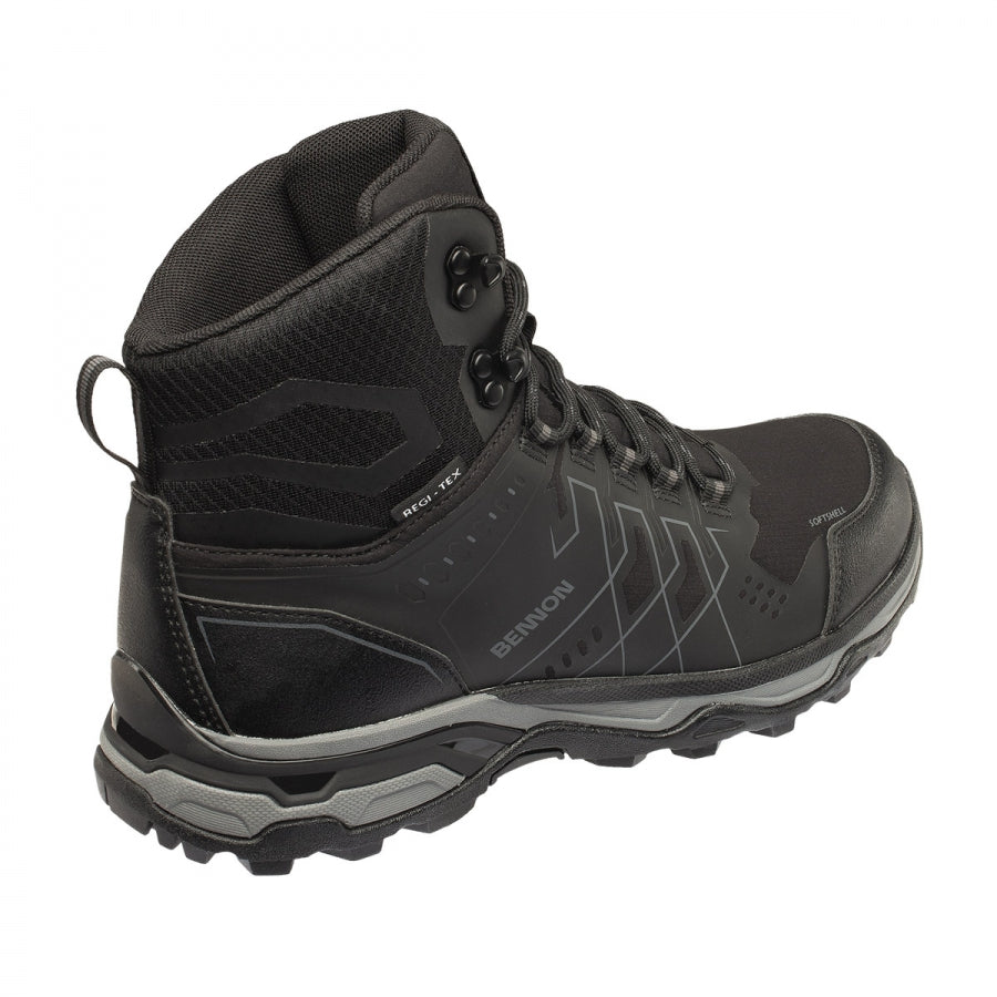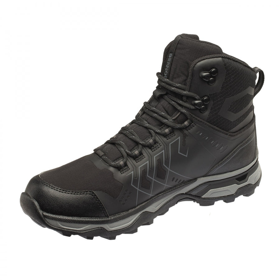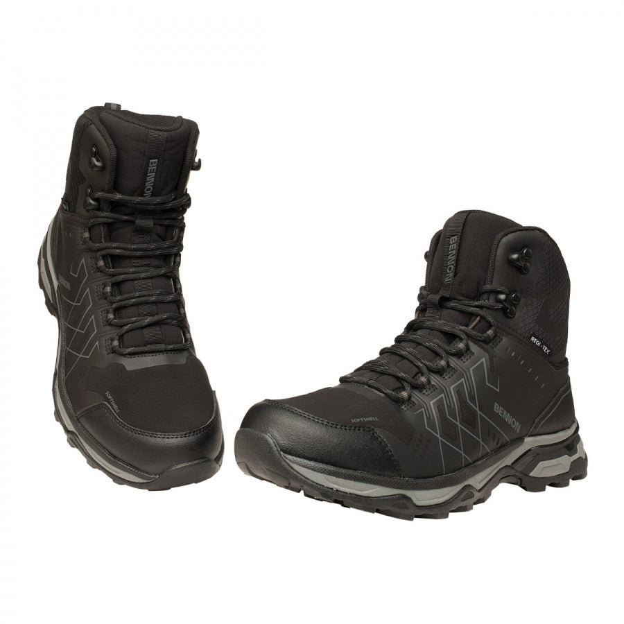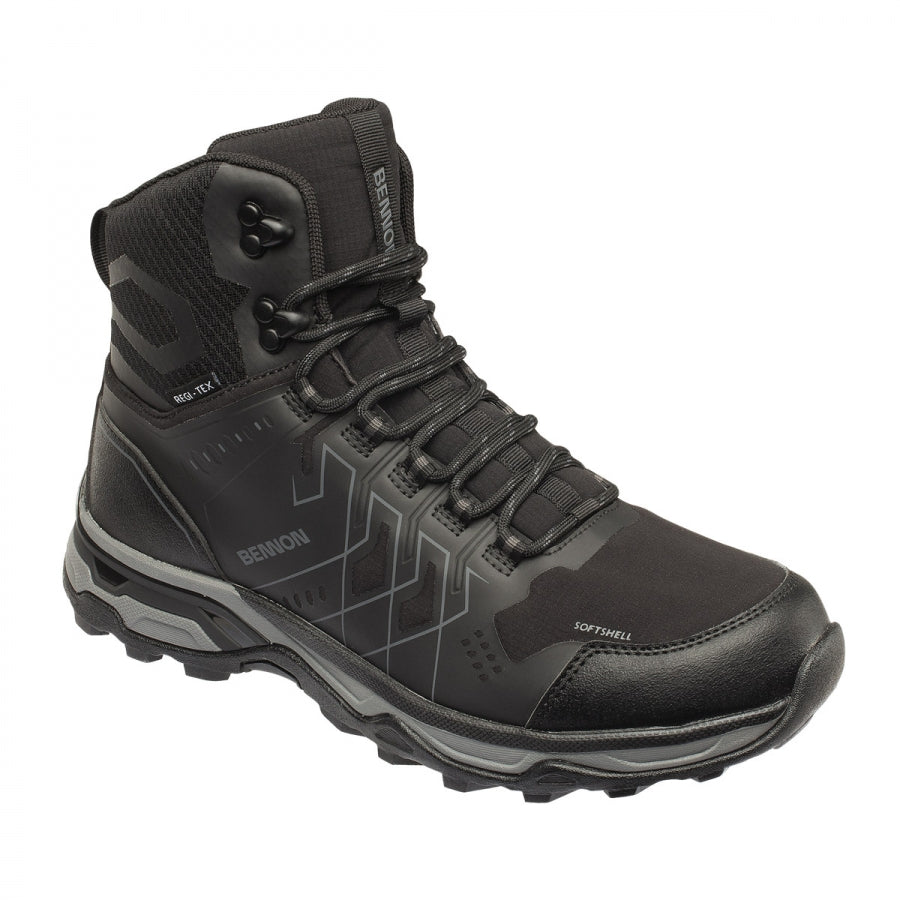 Batai NERO BLACK HIGH priklauso BENNON laisvalaikio batų kolekcijai, kurios gamybai naudojamos pažangiausios technologijos ir šiuolaikinės medžiagos. Dėl softshell ir TPU batviršio, NERO BLACK HIGH yra atsparūs šalčiui ir užtikrina gerą šilumos komfortą. Dėl REGI-TEX membranos jie nepraleidžia vandens ir yra atsparūs vandeniui. Kad būtų patogiau, viduje yra „Absorba XTR“ vidpadis. Jie puikiai tiks lengvuose žygiuose ar gamtoje.