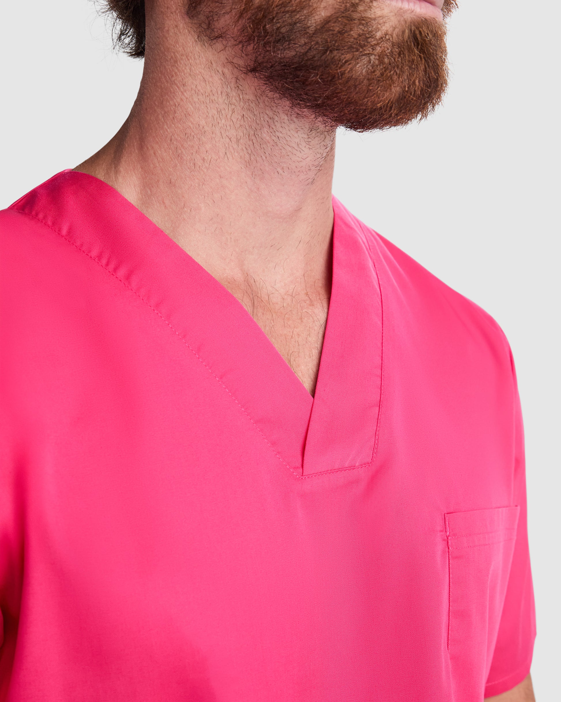 Unisex medicininis švarkelis su trumpomis rankovėmis yra skirtas įvairioms profesijoms, tokioms kaip sveikatos priežiūra, laboratorijos, estetinės paslaugos, maisto pramonė ir valymas. Švarkelis turi kryžminę V formos iškirptę bei tris kišenes: vieną ant krūtinės ir dvi šonines. Apačioje esančios šoninės išpjovos suteikia daugiau judėjimo laisvės.