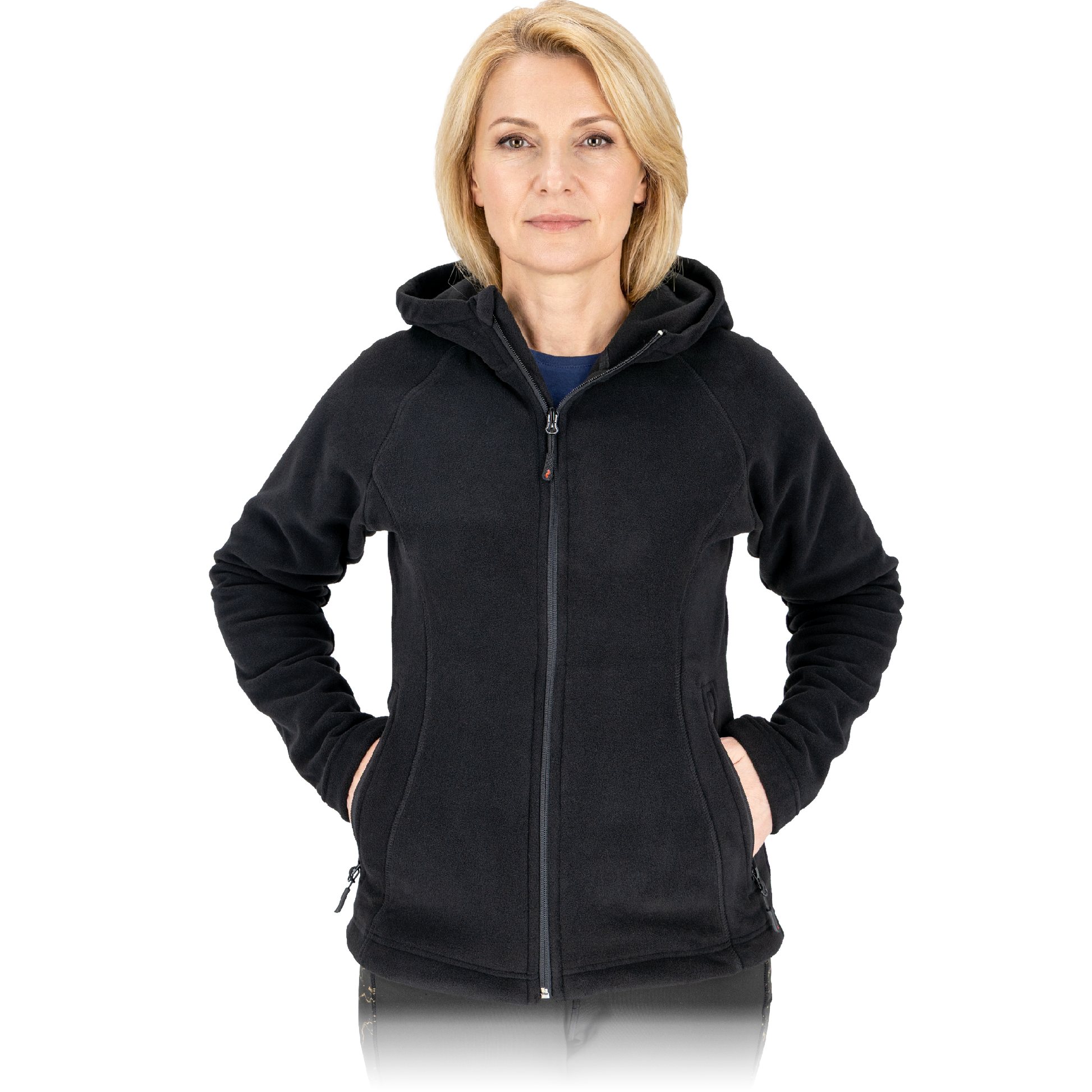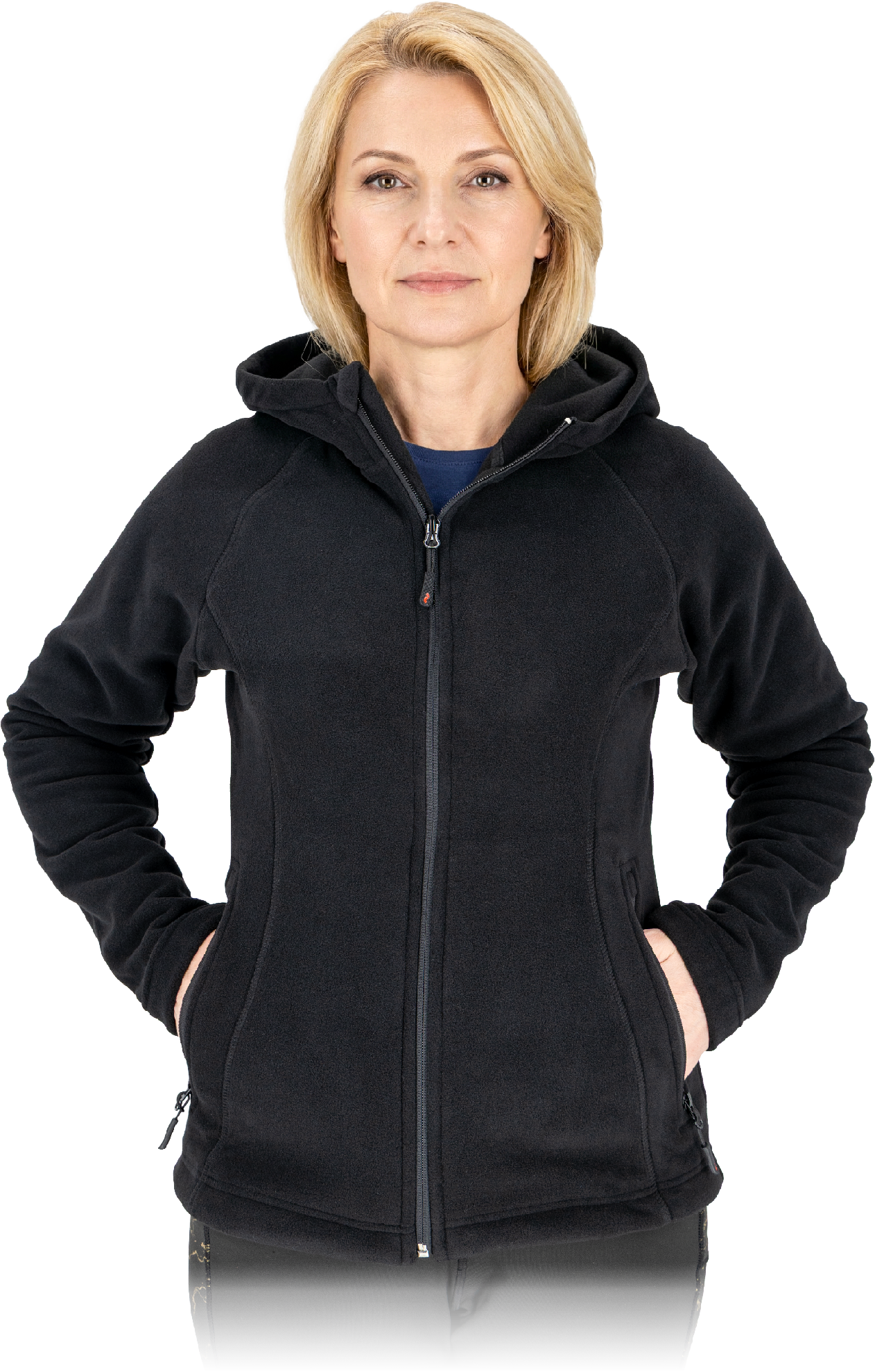 Minkštas, šiltas ir patogus moteriškas flisinis džemperis POLAR LADY, su gobtuvus, juodos spalvos