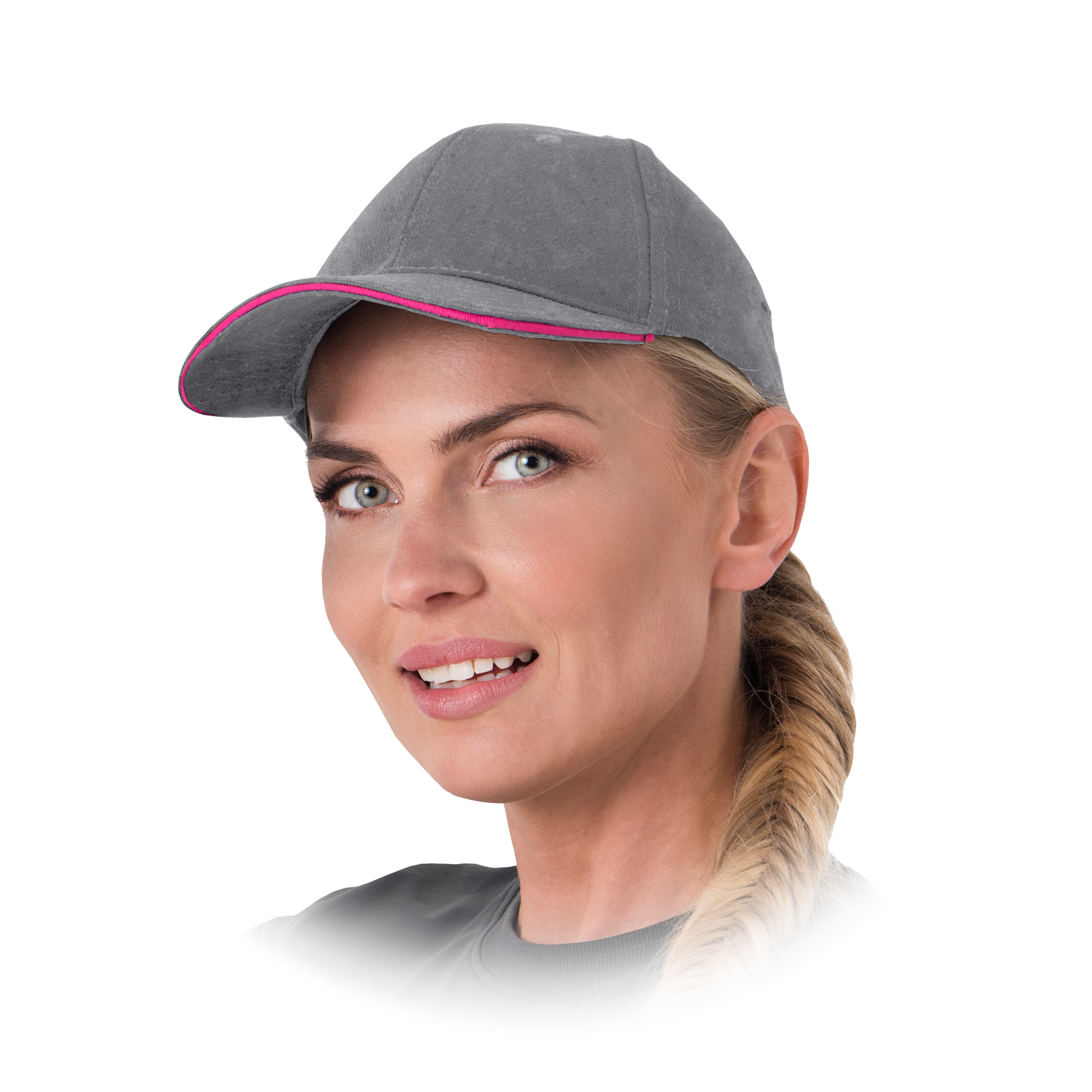 Patogi moteriška kepurė su snapeliu. Turi galimybę reguliuoti galvos apimtį, pagaminta iš 100% medvilnės.