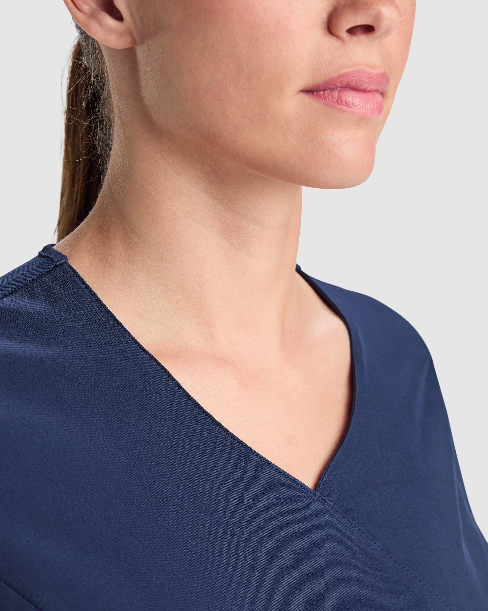 - Kryžminė V formos iškirptė: Suteikia elegantišką ir profesionalų įvaizdį.