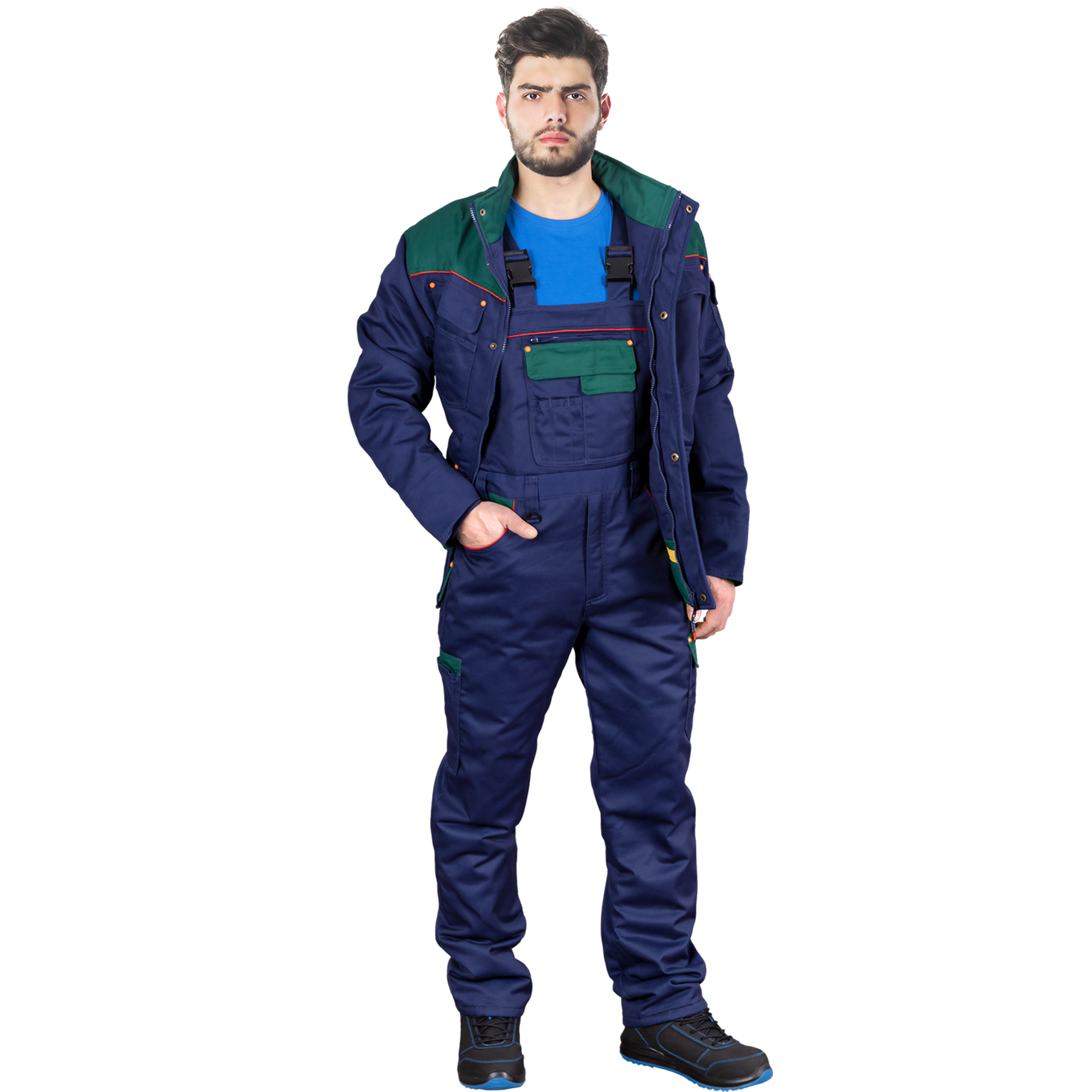 Tvirtos šiltos vyriškos darbo kelnės su petnešomis. Patogiai išdėstytos kišenės, yra numatyta vieta mobiliajam telefonui bei raktams. Sustiprintos siūlės užtikrina ilgesnį ir patogų tarnavimo laiką. Audinys neblunka intensyviai naudojant ir skalbiant.