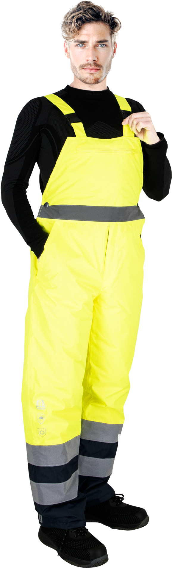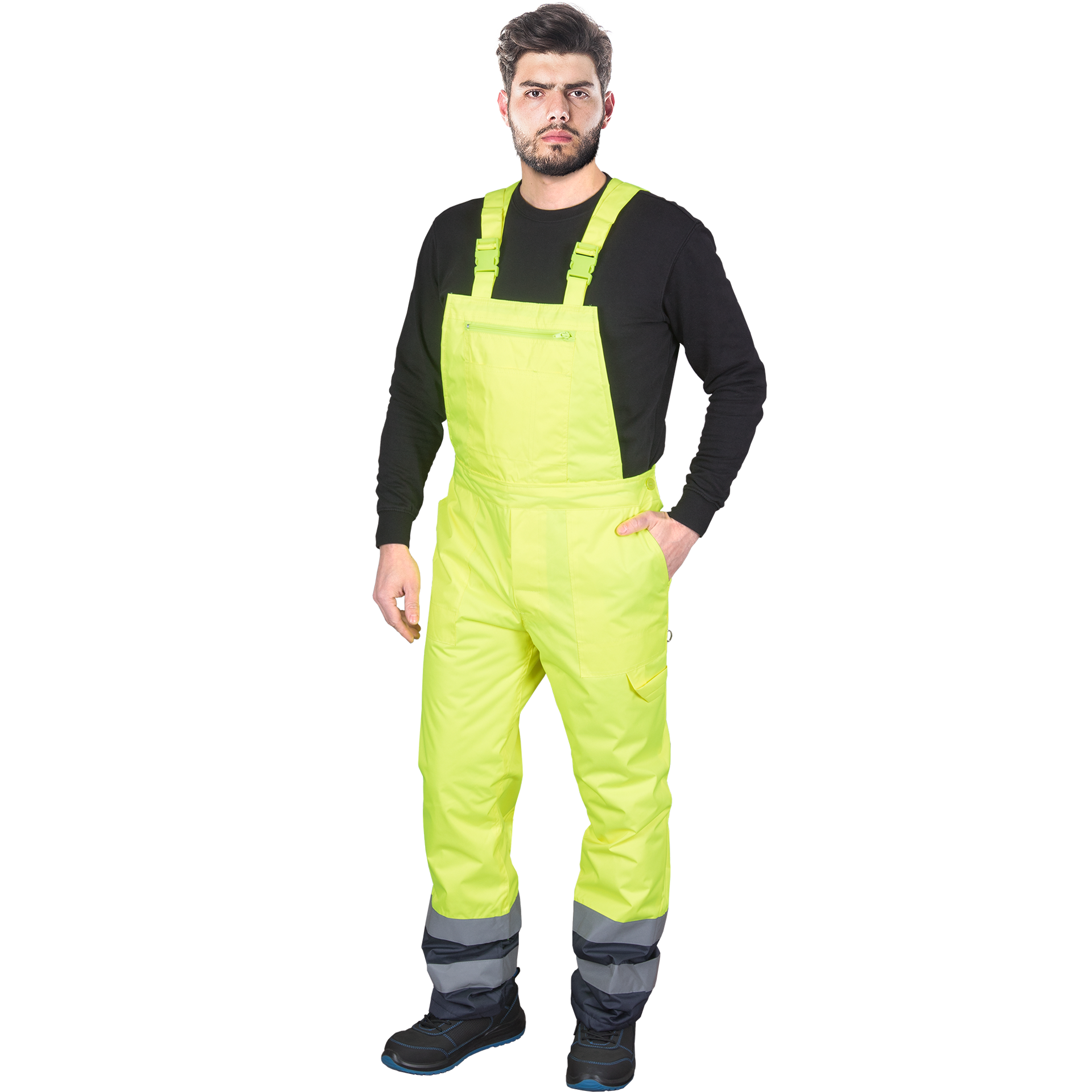 Tvirtos šiltos vyriškos darbo kelnės su petnešomis, pagamintas iš tvirto bei atsparaus audinio. Patogiai išdėstytos kišenės, yra numatyta vieta mobiliajam telefonui bei raktams, numatytos vietos papildomoms kelių apsaugoms, papildomai sustiprintos vietos ties kelnių apačia. Sustiprintos siūlės užtikrina ilgesnį ir patogų tarnavimo laiką. Audinys neblunka intensyviai naudojant ir skalbiant.