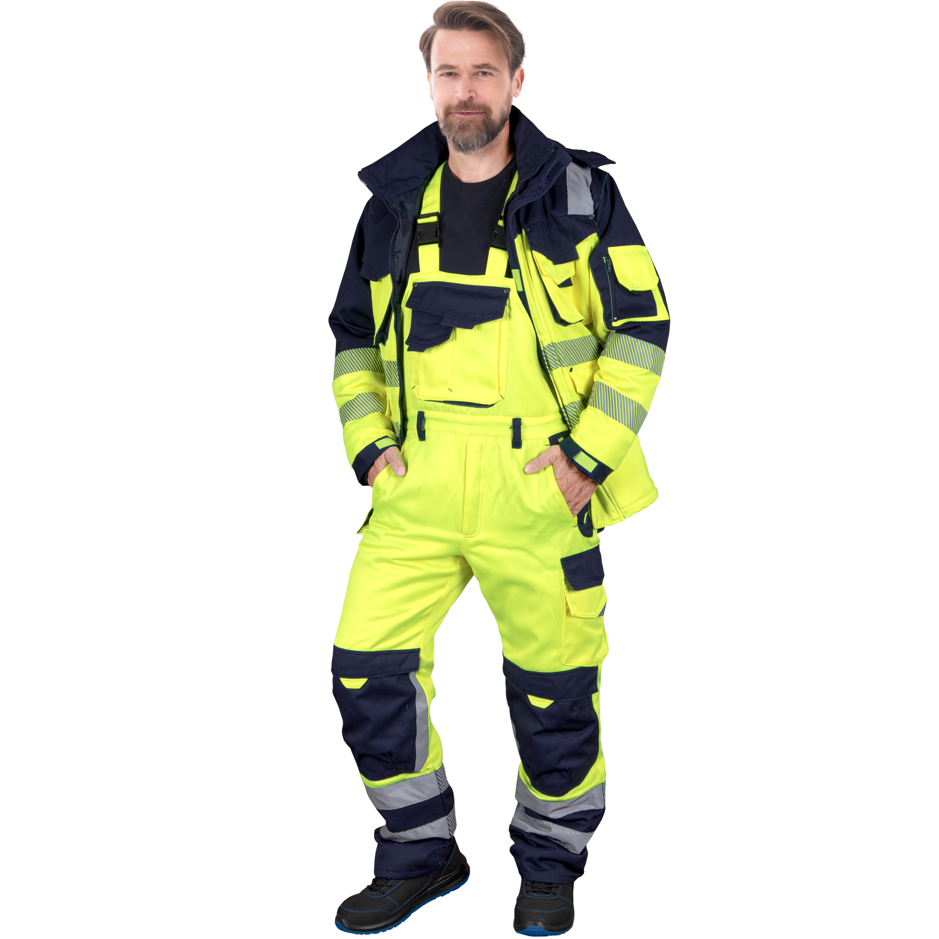 Tvirtos šiltos vyriškos darbo kelnės su petnešomis, pagamintas iš tvirto bei atsparaus audinio. Patogiai išdėstytos kišenės, yra numatyta vieta mobiliajam telefonui bei raktams, numatytos vietos papildomoms kelių apsaugoms, papildomai sustiprintos vietos ties kišenėmis, keliais bei kelnių apačia. Sustiprintos trigubos siūlės užtikrina ilgesnį ir patogų tarnavimo laiką. Audinys neblunka intensyviai naudojant ir skalbiant.
