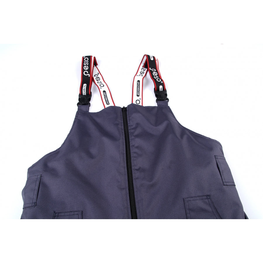 Drėgmei ir vėjui atsparaus audinio, „kvėpuojančios“ žieminis puskombinezonis su petnešomis. Vandeniui nepralaidžios klijuotos dvigubo siūvimo siūlės.