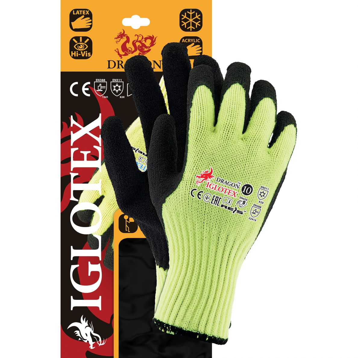 Dengtos ir pašiltintos apsauginės pirštinės darbui, pagamintos iš akrilo verpalų, užtikrinančių komfortą ir šilumą. Padengtos lateksu. Pirštinių vidinė dalis padengta lateksine danga, apsaugančia nuo skysčių bei mechaninio poveikio.
