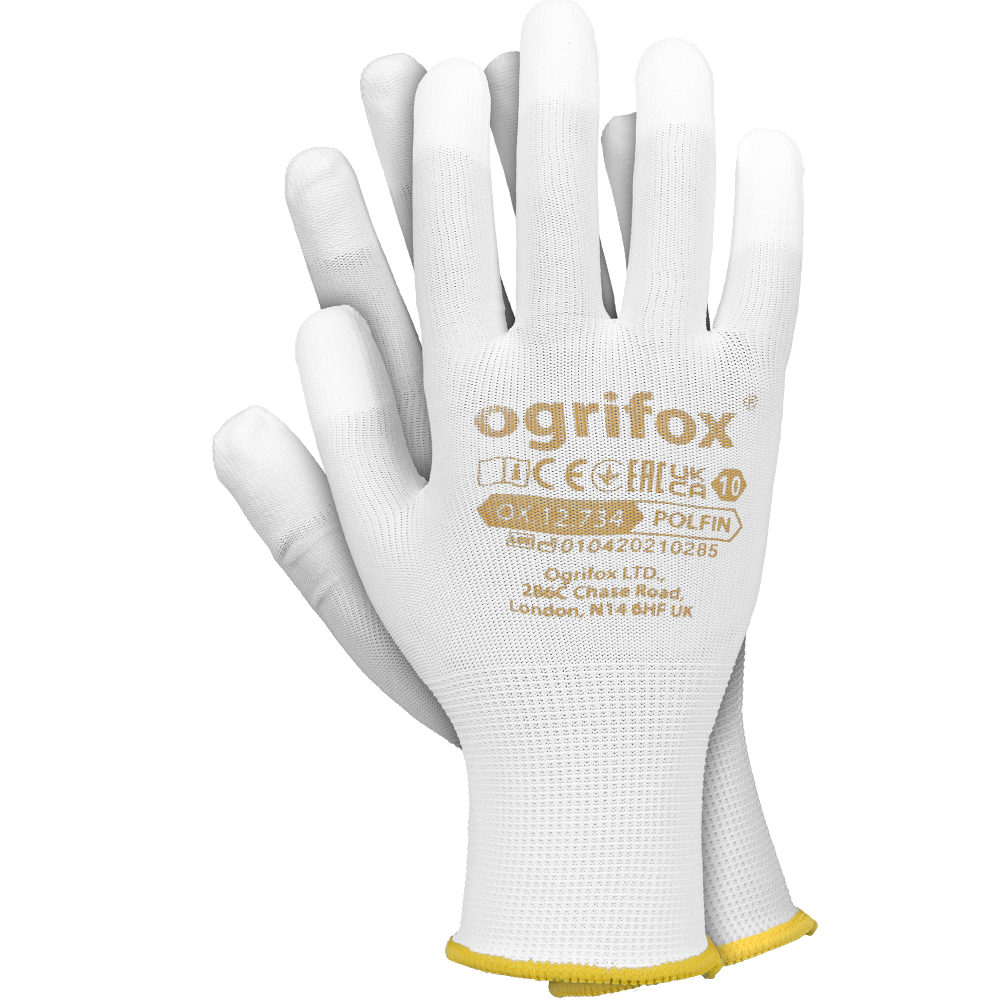 Apsauginės pirštinės, pirštų galai aplieti PU (poliuretanu).
