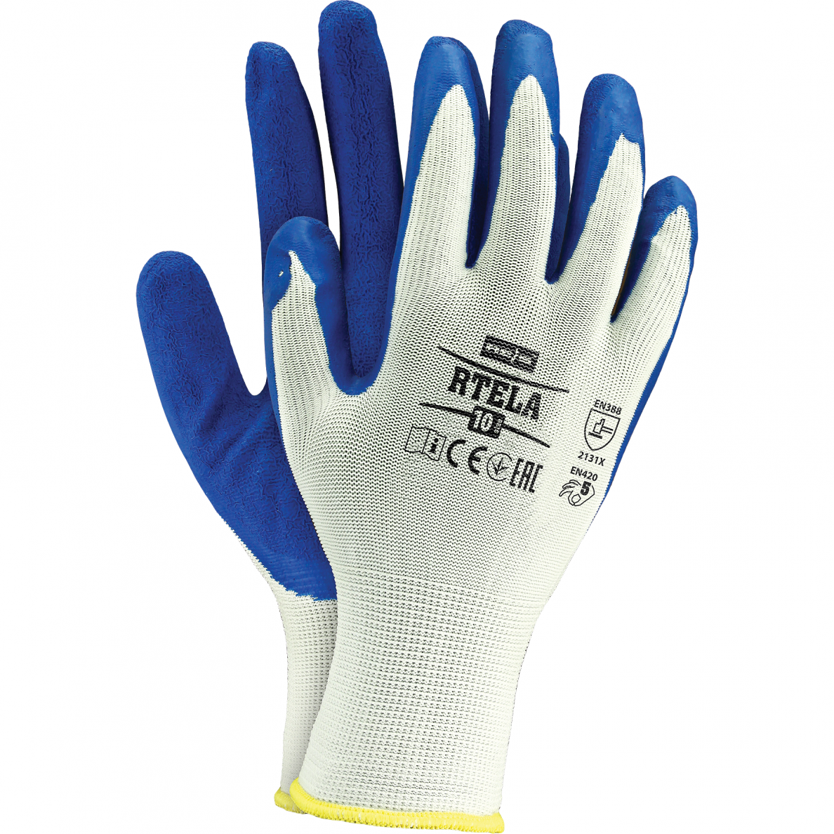 Apsauginės pirštinės pagamintos iš poliesterio, padengtos lateksu.