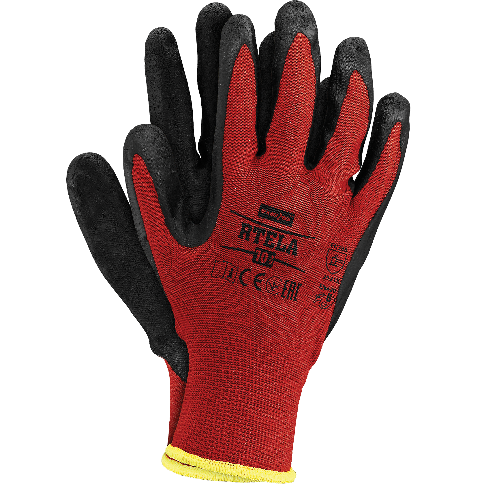 Apsauginės pirštinės pagamintos iš poliesterio, padengtos lateksu.