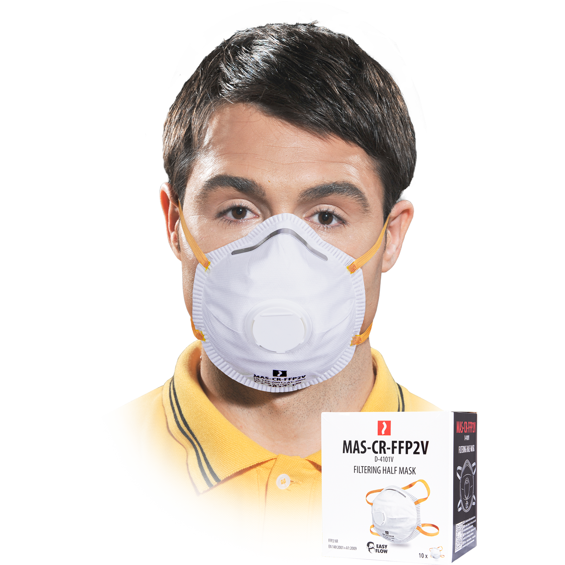 Apsauginis respiratorius. Apsaugo nuo netoksiškų arba vidutiniškai toksiškų skystų dalelių ir aerozolių. Apsaugo nuo dulkių, metalo dūmų, alyvos garų ir ozono dujų ir virusų. Plastikinė nosies juostelė išorinėje pusėje užtikrina dar geresnę kvėpavimo takų apsaugą - lengvai pritaikoma pagal veido formą, nepalieka nuospaudų. Ant veido prisitvirtina elastingomis juostelėmis. Pakuotė:10 vnt. (kaina nurodyta visos pakuotės: 10vnt.).