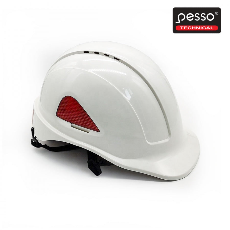 krentančių iš viršaus smūgio jėgą gamyklose ar statybvietėse. Galvos apsauga iš priekio, šonų ir nugaros.