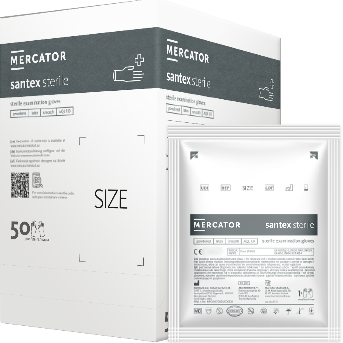 Sterilios lateksinės pirštinės be pudros MERCATOR SANTEX® (50 porų)
