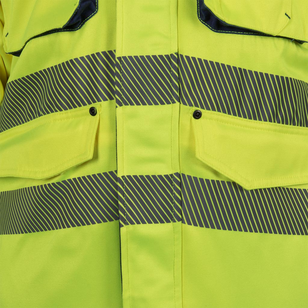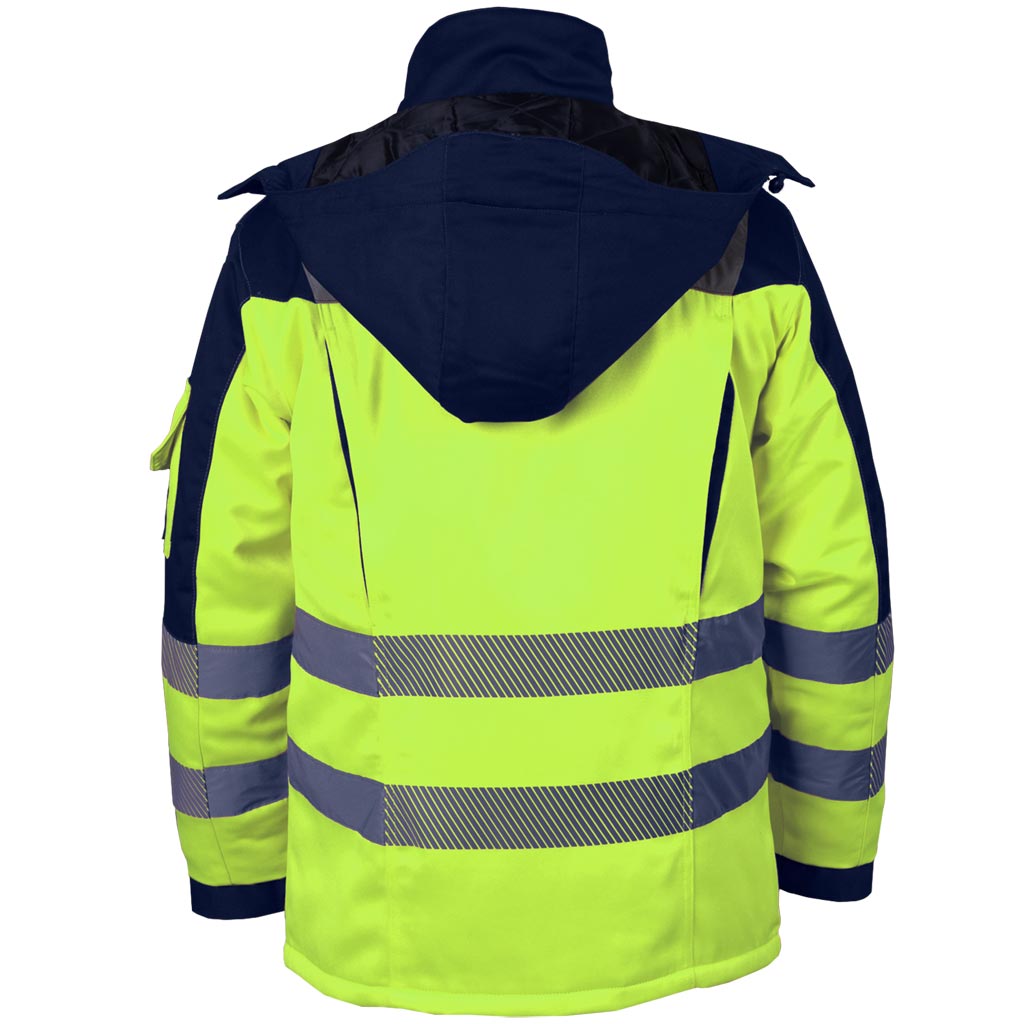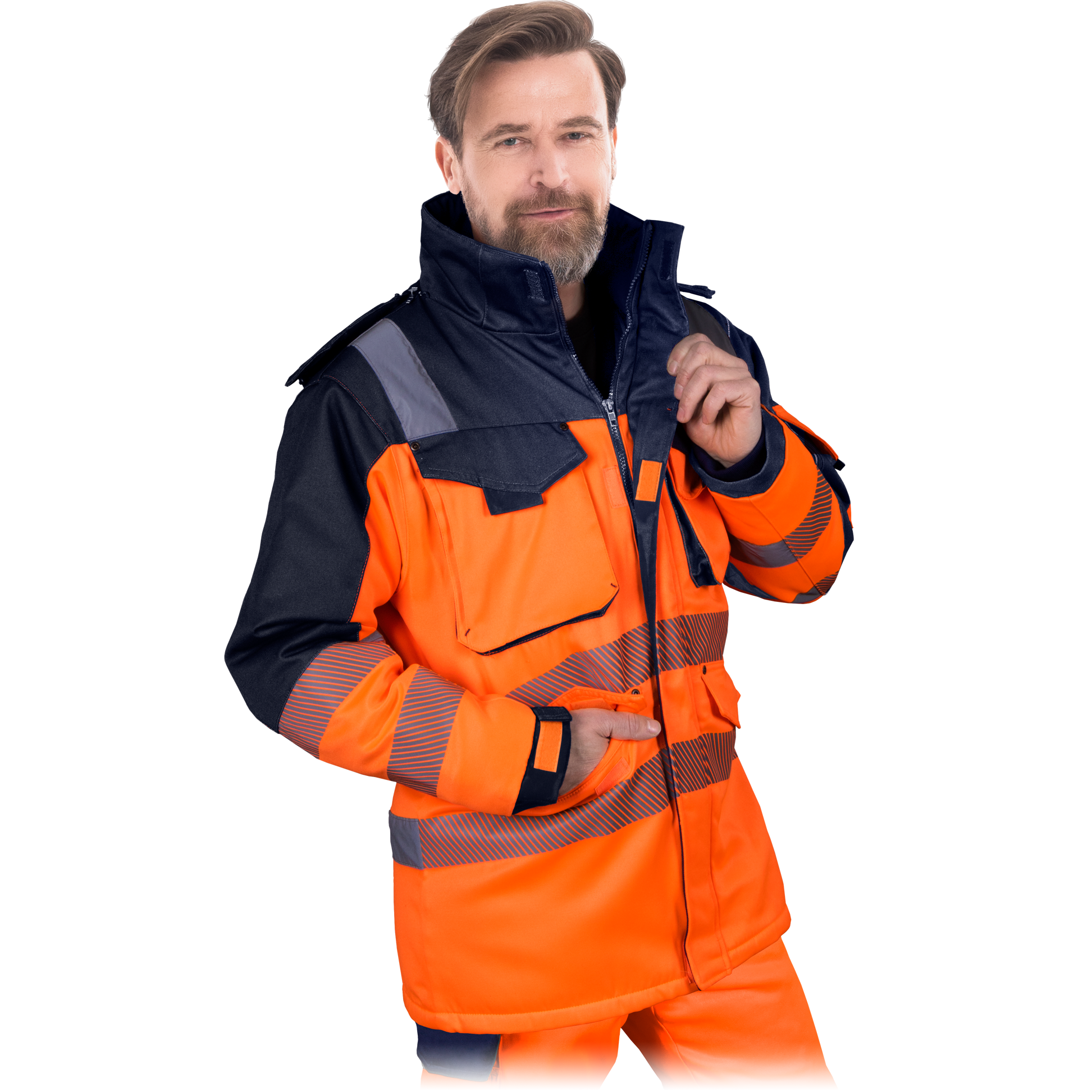 Tvirta ir šilta vyriška darbo striukė su šviesą atspindinčiomis juostomis, pritaikyta intensyviam naudojimui sudėtingomis sąlygomis. Pasiūta iš atsparaus audinio. Suplanuota daug patogių kišenių.