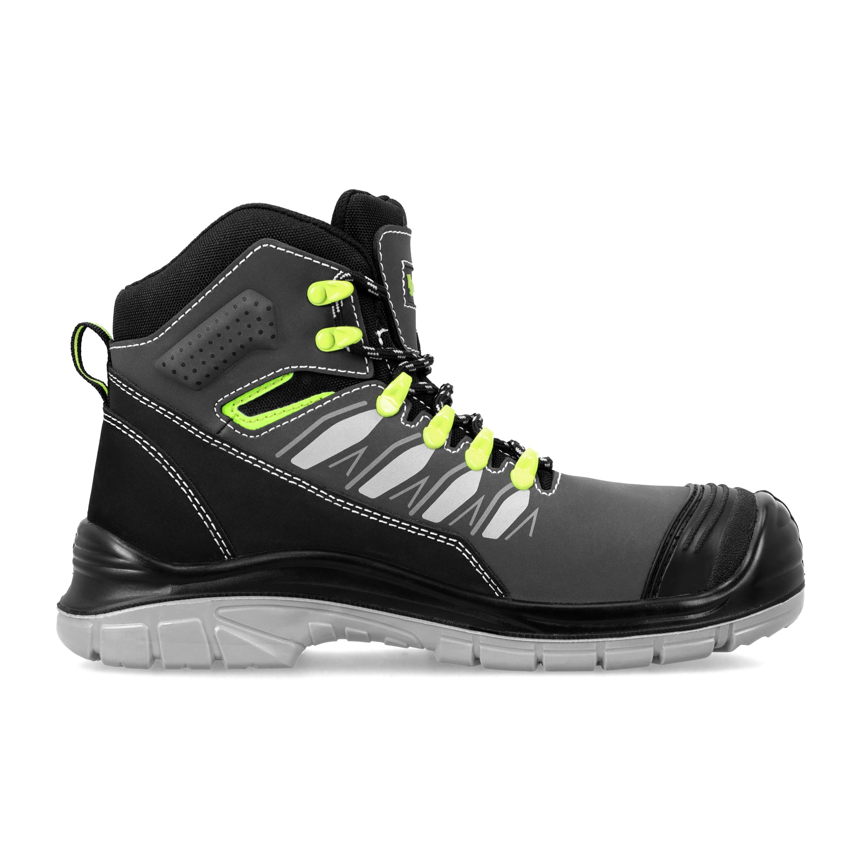 Aukštas aulo modelis su plieniniu apsauginiu noselės dangteliu, nepraduriamu padu ir neslystančiu padu – tai idealus pasirinkimas tiems, kas dirba statybose, pramonėje ar logistikos sektoriuje.