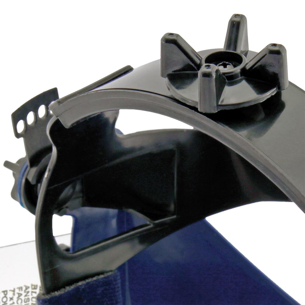Veido skydelis, kurį sudaro pagrindinis skydas, tvirtinimas ant galvos, smakro dangtelis ir vyrių sistema.