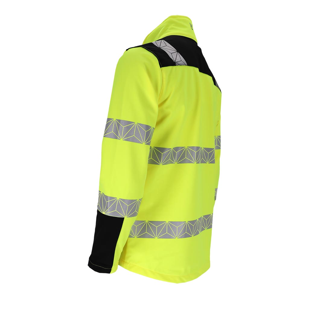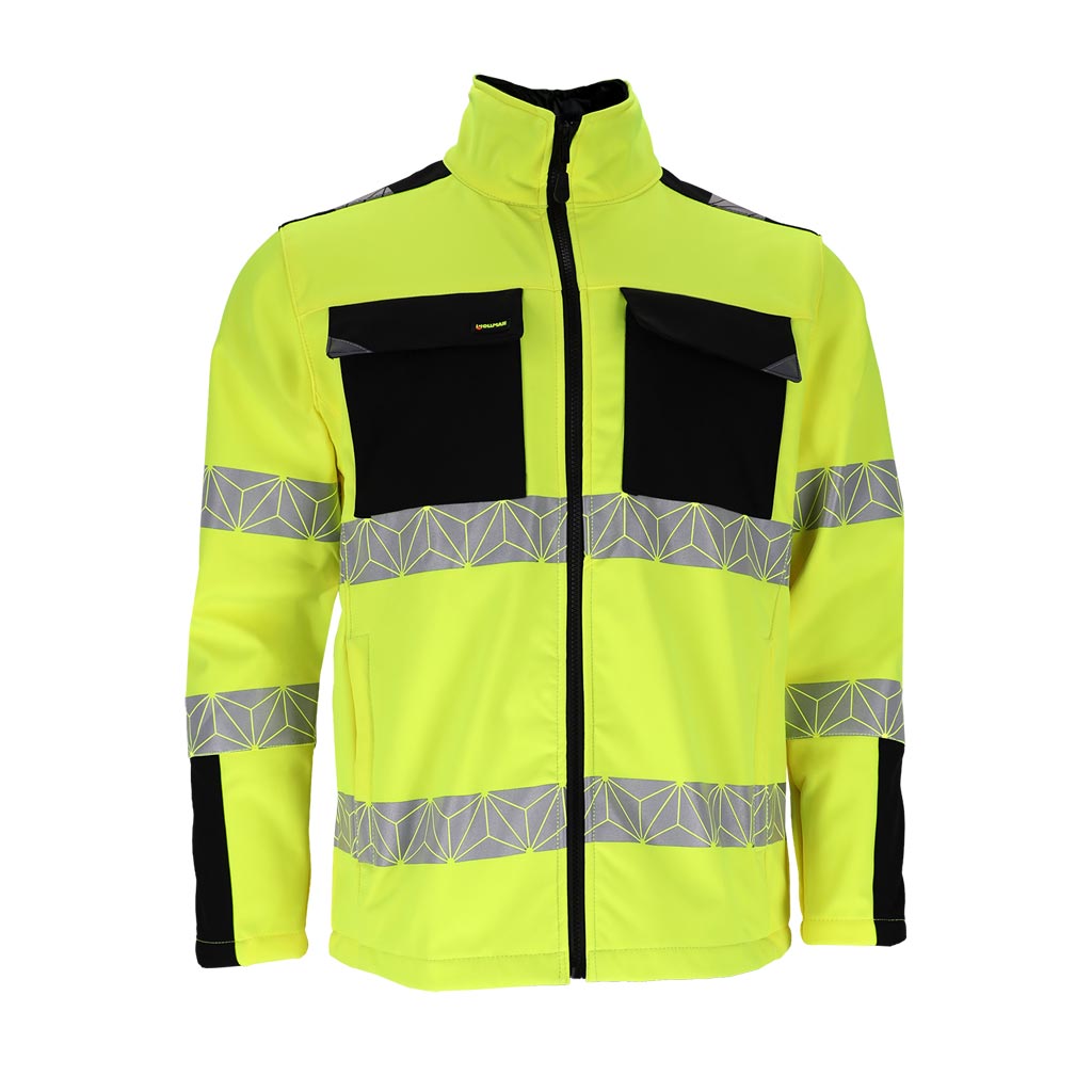 Padidinto matomumo, funkcionalus ir patogus švarkas darbui lauke įvairiomis oro sąlygomis. Softshell tipo medžiaga - ypač elastinga, neperpučiama vėjo bei apsauganti nui drėgmės.